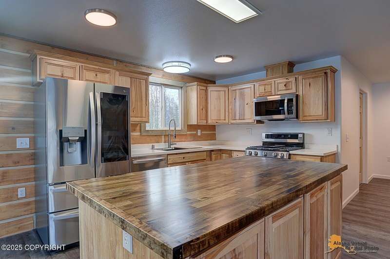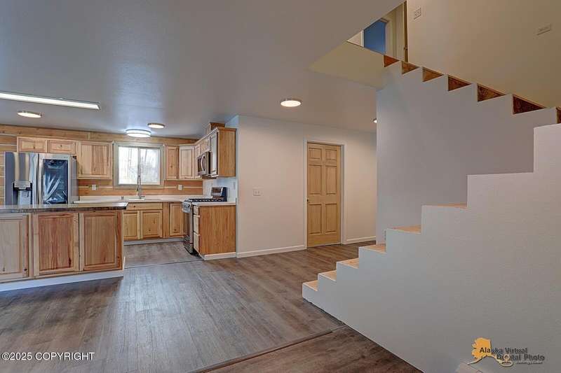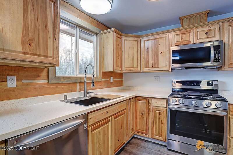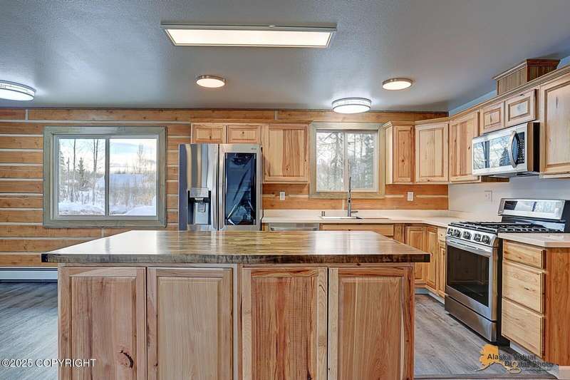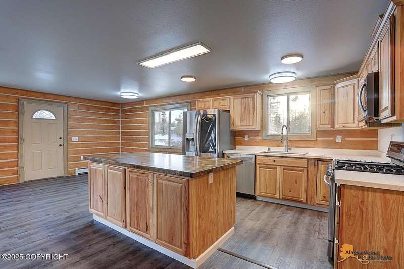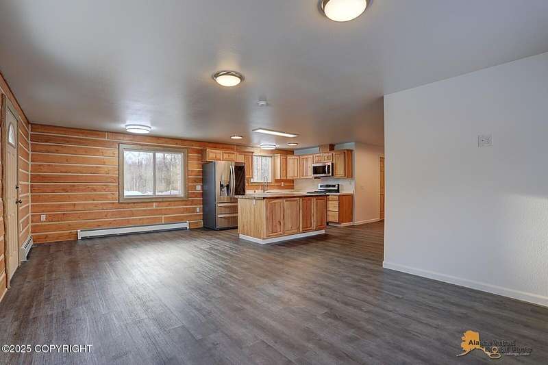 Escape to your slice of Alaska in this stunning log home! This updated home boasts the charm of a cozy cabin, complete with all the modern features you need. It offers 4 bedrooms PLUS a versatile office space/bedroom and 3 full bathrooms. The primary suite is private and perfect for relaxing after a long day. The kitchen has been fully updated with new appliances, ample counter space, and sufficient storage. The open living area is perfect for relaxing or entertaining friends and family. There's also a large basement or crawlspace that you can convert into a media room or family room or use for extra storage. A great bonusthere are two laundry areas, one on each floor, so no more carrying laundry up and down the stairs! Outside, the large lot provides ample space to spread out and enjoy the outdoors. The recently completed driveway enhances the convenience and adds great curb appeal to the home. There's also room to add a garage, a shop, or any other feature you may need. Enjoy country living with fun nearby, like groomed winter trails and the Big Lake multi-use trail system. Don't miss outschedule your showing today! This dream home won't last long!