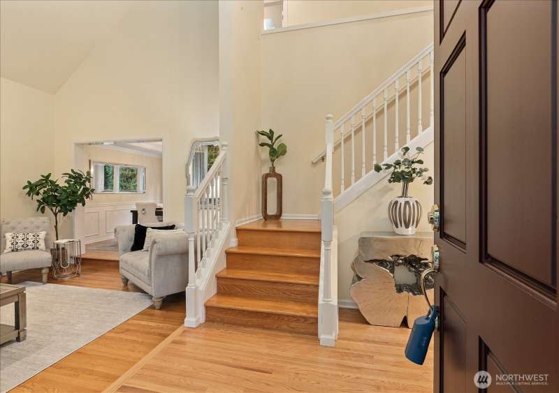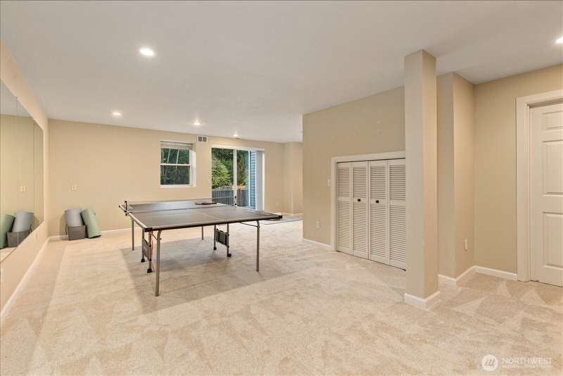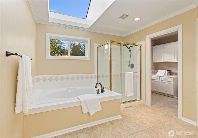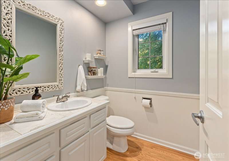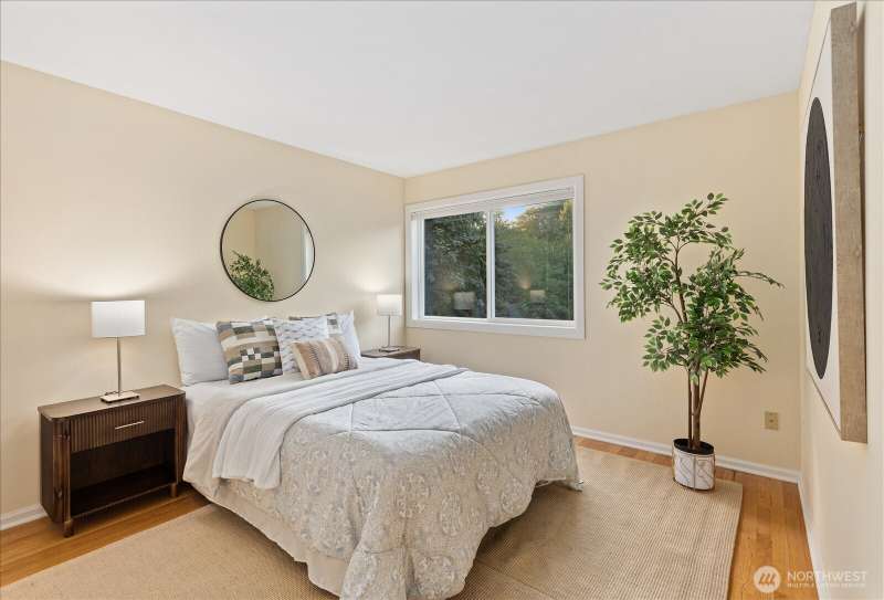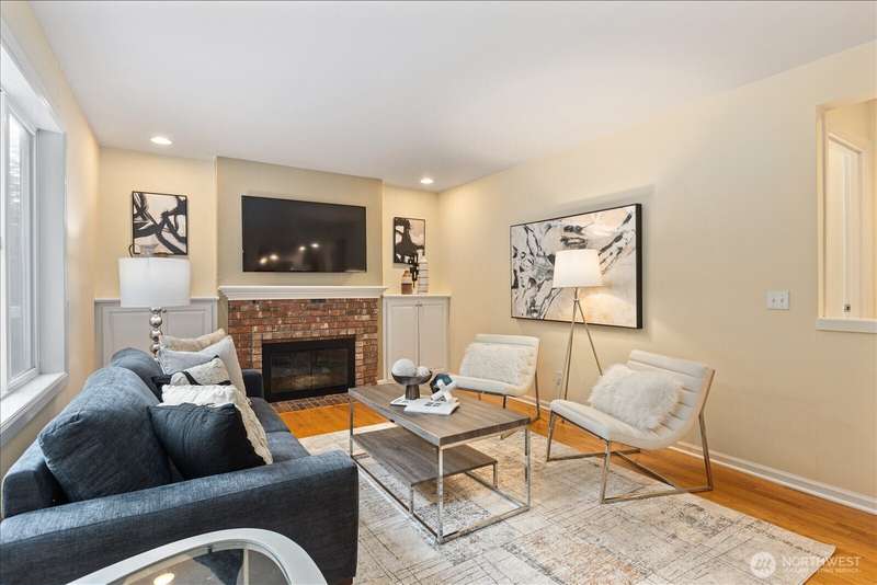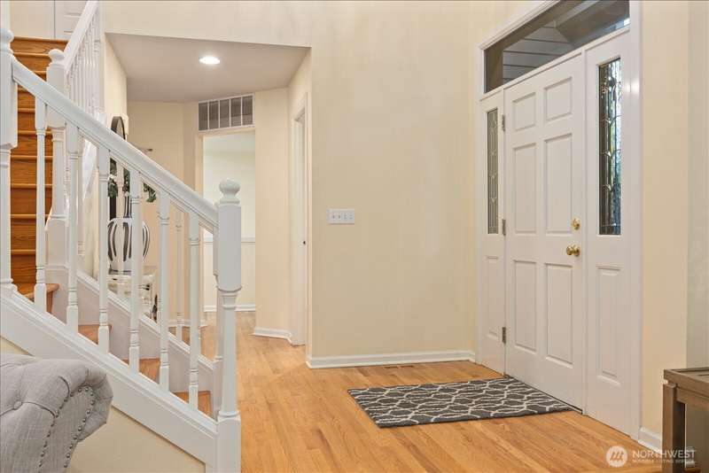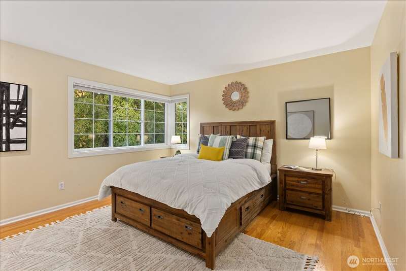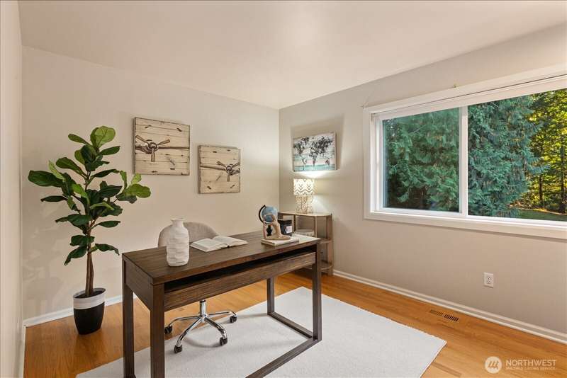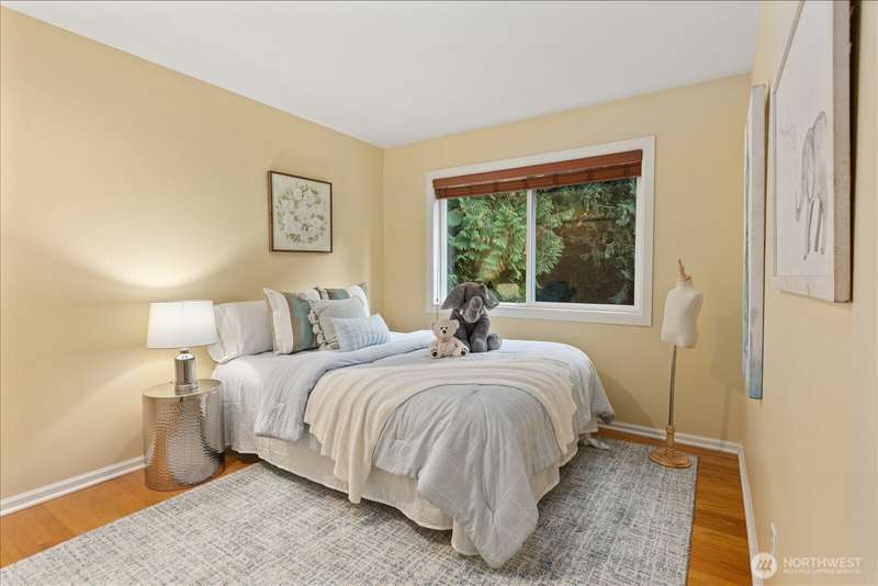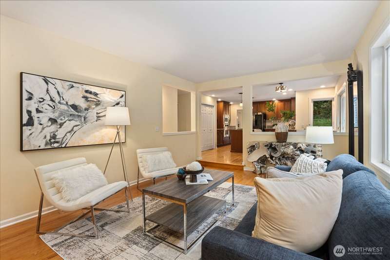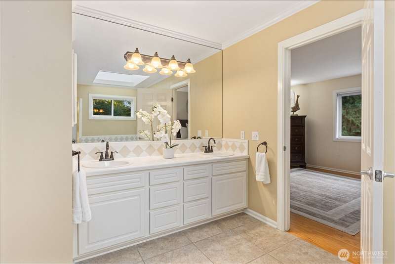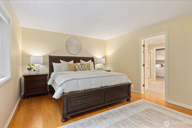 PRICE REDUCED $65k!! Tucked away at the end of a private lane, this beautiful 4 bedroom, 3.5 bath home offers the perfect blend of privacy and elegance. Located in a sought after area, this home invites you to a park-like setting on 1.18 acres next to a greenbelt. The well designed floorplan features hardwood floors throughout, large windows, skylights, granite counters, stainless appliances and 2 cozy gas fireplaces & large 3-car garage. A spacious primary suite includes a 5-piece bath, plus an ensuite bedroom on the main floor for guests. The lower level boasts a huge bonus room, perfect for a home gym or media space. This home has been well maintained and offers a peaceful retreat just minutes from all that the Eastside has to offer!