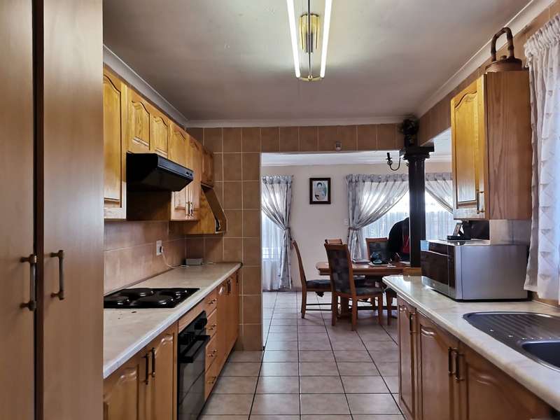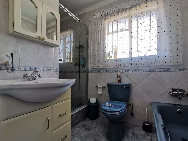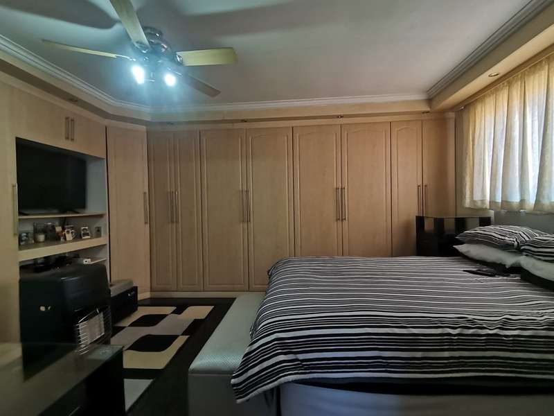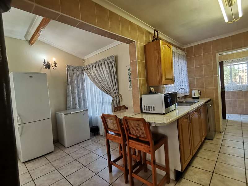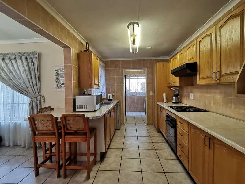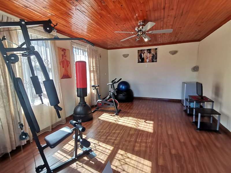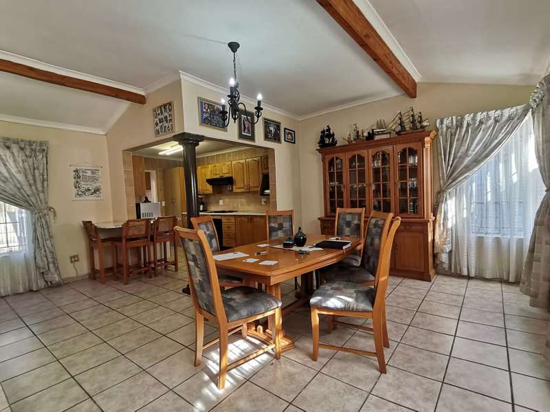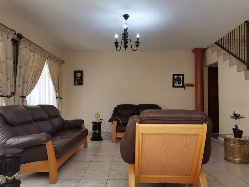 Be welcome into the entrance hall leading to the well sized open plan family lounge, dining room and lovely kitchen complete with ample counter space, ample cupboards, a separate scullery, breakfast nook and space for a double-door fridge. A separate guest toilet downstairs is perfect for visitors and added convenience. Upstairs offers 3 well sized and tiled bedrooms with built-in cupboards. The main bedroom has an en-suite and a walk-in cupboard. The second full bathroom serves the other 2 bedrooms and the 1 spacious room that can be easily converted to the 4th bedroom. Outside offers a swimming pool, a spacious covered entertainment area for summer weather including staff quarters. The home is complete with a double door garage that accommodates 4 vehicles as well as a workspace for Dad....