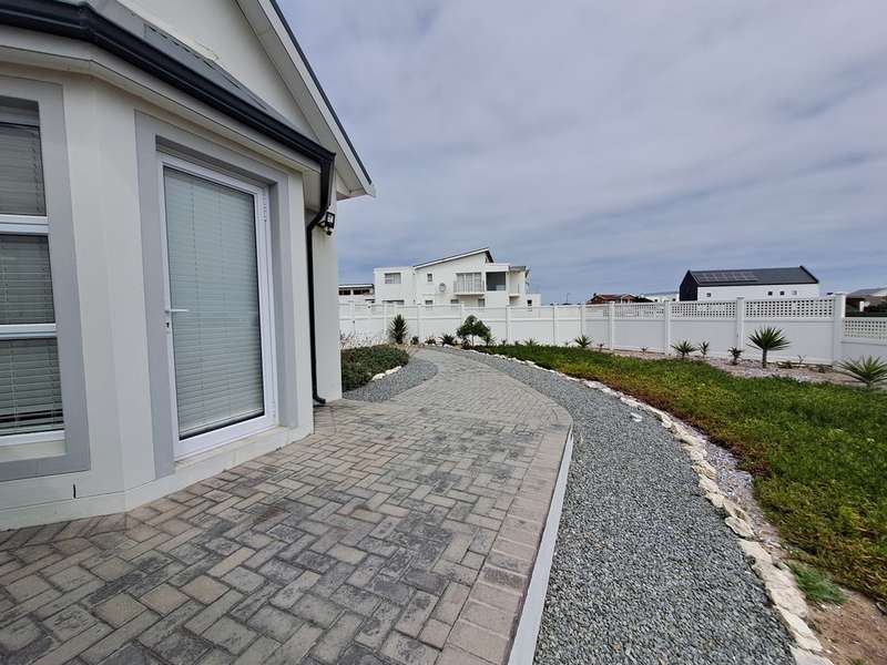 Step into the perfect blend of coastal charm and modern elegance with this beautifully designed single-level home in Yzerfontein, located along the scenic West Coast of South Africa. Nestled on a sought-after street, this north-facing haven is drenched in natural light and offers a serene retreat just moments away from the beach and local amenities. As you enter, the spacious and sunlit living area invites you to unwind. The heart of the home extends seamlessly to a stunning glass-enclosed patio, creating an ideal space for enjoying alfresco meals with family and friends while the soothing ocean breeze drifts through. Imagine relaxing here, watching breathtaking sunsets as the day melts away. Key Features: Prime Location: Ideally located just a short stroll from the pristine beach, shops, and lively restaurants, this home offers the best of coastal living. Bright, Open Living Spaces: The open-plan living area exudes a warm and inviting ambiance, flowing effortlessly to the enclosed patio. The patio is perfect for dining or simply relaxing while enjoying the fresh air and ocean views. Three Luxurious En-Suite Bedrooms: Each bedroom is a private retreat, complete with built-in cupboards for ample storage and an uncluttered atmosphere. The main bedroom boasts a lavish en-suite with a sumptuous bath for ultimate relaxation. Chef-Inspired Gourmet Kitchen: The L-shaped kitchen is a culinary delight, equipped with a gas/induction hob and an eye-level oven. A separate scullery keeps the kitchen tidy and organized, ensuring effortless meal preparation. Outdoor Entertaining Spaces: This home sits on a large corner stand, offering plenty of room for outdoor activities and the opportunity to extend the entertainment area. The patio, ideal for barbecues, offers a cozy spot to gather with loved ones. Double Garage: Secure parking is provided with remote-control access, and a reliable alarm system ensures peace of mind. Future Growth Potential: With ample space for expansion, there's the exciting potential to add a second level, enhancing this home with stunning sea views and even more living space. Additional Features: Low-maintenance, fully fenced garden perfect for sun-soaked afternoons, stargazing, or children’s play. Fully tiled floors throughout for easy care and a polished, modern aesthetic. Optional fireplace for cozy evenings on the patio. This exquisite property is more than just a house—it’s an opportunity to embrace a life of effortless coastal luxury. Whether you’re hosting family barbecues, savoring the tranquility of ocean breezes, or dreaming of future expansions, this Yzerfontein gem is your ticket to a life filled with sun, sea, and cherished memories.