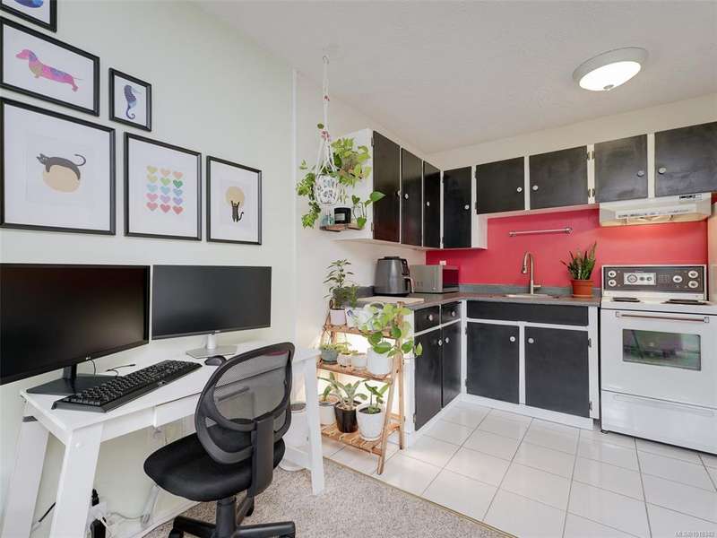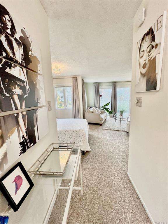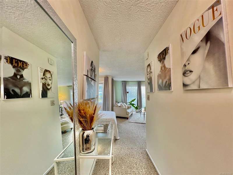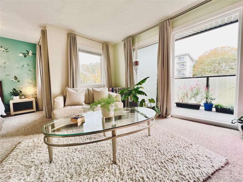 Sunny & Stylish South-Facing Studio–Central Location! Step into this bright and spacious 542 sqft. studio, perfect for first-time buyers or investors looking for an affordable opportunity in a great location. The open floor plan feels airy and inviting, enhanced by glam lighting and a soft contemporary paint scheme. Enjoy the comfort of in-suite laundry/storage and a renovated bathroom featuring new tile surround, new flooring and elegant vanity with modern finishes. South facing covered balcony with glass detailing. With its smart layout, simply add a curtain or partition to create the look & feel of a 1 bedroom condo. Professionally run strata allows unrestricted rentals (30-day minimum), 1 parking space, indoor bike storage. Conveniently located on direct bus routes to Camosun College, UVic, Victoria's inner harbour. Close to parks, shopping, recreation—you’ll love the lifestyle this condo offers. A stylish space at an unbeatable value—book your viewing today before it’s gone!