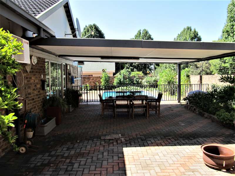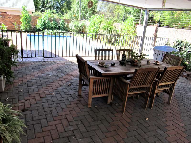 Spacious, neat family home with patio and swimming pool. The Granny Flat with a bedroom, bathroom with shower, basin and toilet and a kitchen is a big bonus! The neat kitchen is spacious with ample cupboard space, scullery, granite tops, breakfast nook, a conventual AEG stove, as well as a gas stove. There are 2 lounges and a dining room. There are 4 bedrooms with roof fans, main bedroom with aircon and on suite bathroom. The double garage has automated doors with an adjacent work room and there are 3 carports. There is also an electrical switchover to switch from Escom to generator power. The patio is located next to the newly renovated swimming pool. There is good security with an alarm, security beams and reaction unit. The property and neat garden is walled, with a security gate. This house is located in one of the prime areas of Bronkhorstspruit and within walking distance from schools. Call me today to view this gem!