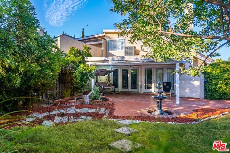 One of the largest corner lots in Valencia Racquet Club! Rare find with unmatched lot size and location. This stylish 4-bed, 2-bath home boasts an open layout filled with natural light, soaring ceilings, fresh paint, and smart lighting. A bright white kitchen with a large island, glass-front cabinets, and recessed lighting connects to dining and family spacesideal for hosting. French doors open to a private wraparound backyard featuring a brick patio and plenty of room to garden, play, or add a future pool. The primary suite on the main level includes an updated vanity and ample closets. Upstairs, a large versatile bedroom with two walk-in closets and designer wallpaper offers space for a guest retreat, office, or studio. Two additional bedrooms share a full bath. Extras include security cameras, an oversized 2-car garage.The community offers a pool, spa, sports court, and playground, with large public parks and top-rated schools just minutes away.