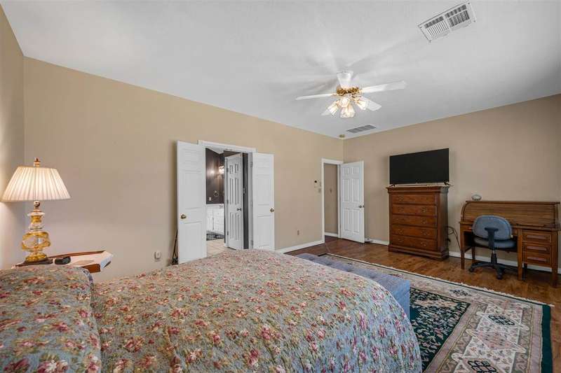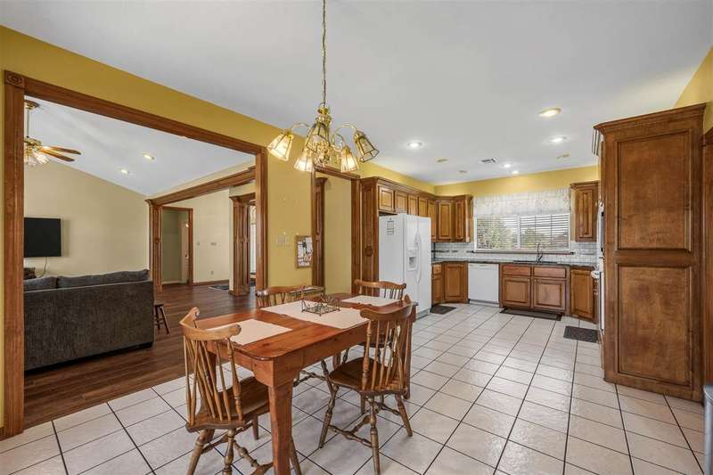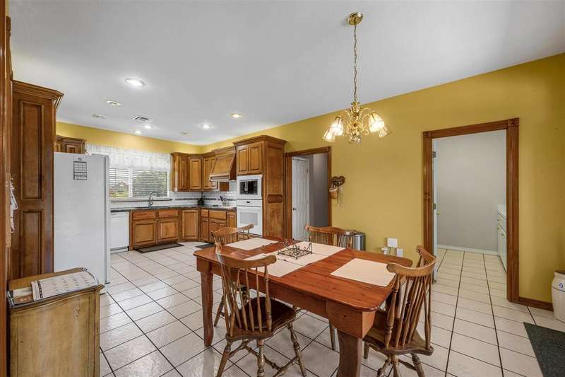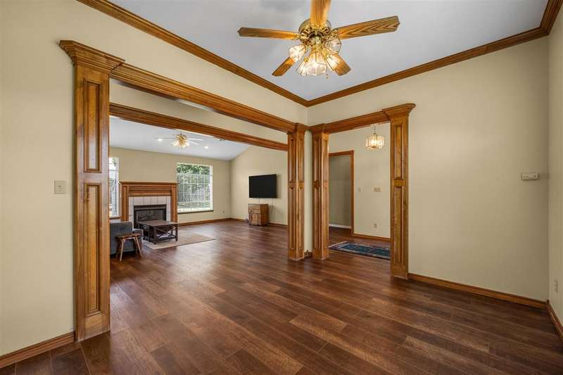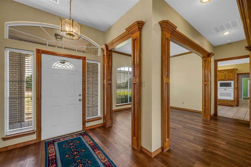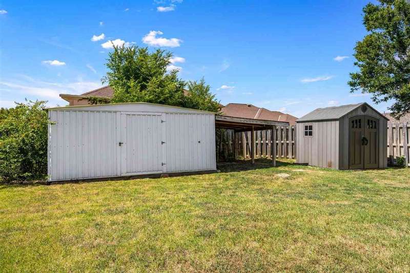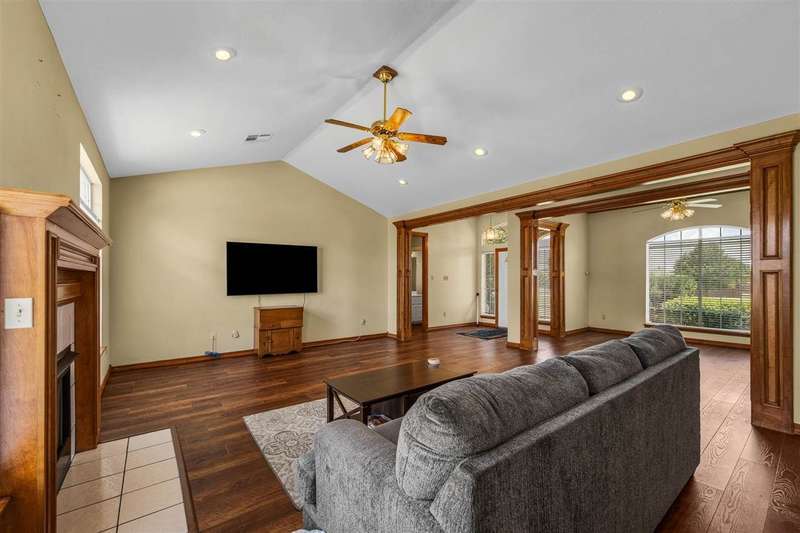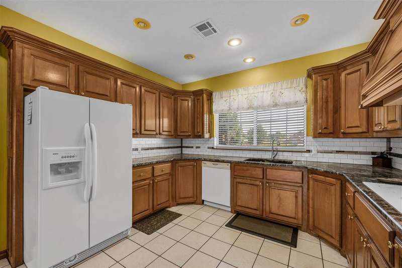 Welcome to this stunning corner-lot home offering spacious living and exceptional features throughout! This beautifully maintained property boasts 3 generous bedrooms, 2.5 bathrooms, and a 3-car garage. You'll love the striking curb appeal and durable luxury vinyl plank flooring that runs throughout the entire home including all bedrooms with ceramic tile in the kitchen and bathrooms. Step inside to find a formal dining room, an expansive open-concept living area with soaring ceilings and a cozy gas log fireplace, and a well-appointed kitchen featuring granite countertops, custom cabinetry, pull-out drawers, three lazy susans, and built-in baking racks. There's also a casual dining area and a large bonus room off the kitchen to be used as a second pantry, or utility room complete with a built-in ironing board. The private primary suite is a true retreat, offering a spacious bedroom, en-suite bath with dual vanities, a corner whirlpool tub, separate shower, and two walk-in closets. Enjoy outdoor living with a covered patio, a storm shelter for peace of mind, and a fully fenced yard with a wood privacy fence. Contact Tiphanie Murphy@580-512-2135