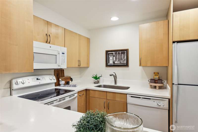 Enjoy city living in this bright and spacious 2-bedroom, 1.5-bath condo on Capitol Hill, offering 1,017 sq ft of well-designed space. The updated kitchen, fresh interior paint, gas fireplace, and AC create a comfortable and inviting home. Located on the first floor, this unit gets tons of natural light and offers nice city views. Walk to Amazon, Google, the light rail, and the shops and restaurants on Broadway. Includes a 1-car carport in a gated parking area. With no rental cap and low HOA dues of just $381/month, this condo is a fantastic opportunity for both homeowners and investors looking for value and convenience in a prime location close to downtown.