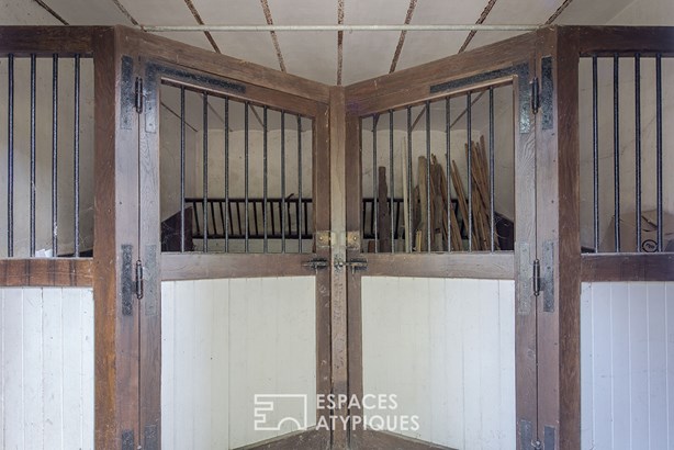 Facing 'La Tetardiere', 2 brick buildings house, for the first, garages and 2 workshops, for the second, a magnificent old stable with 2 boxes and its upholstery, a vast workshop and its high wind in period ironwork.