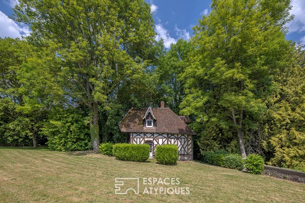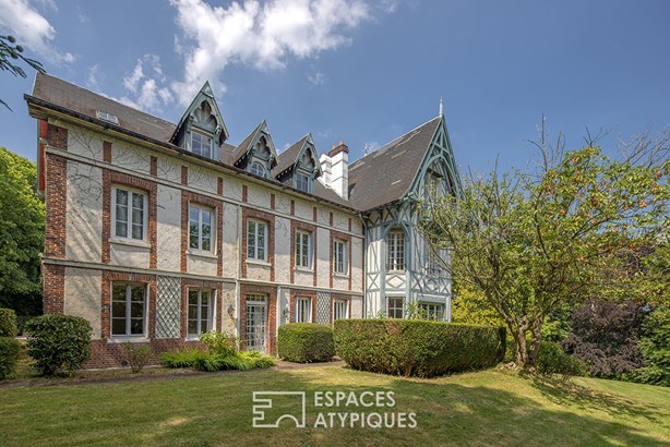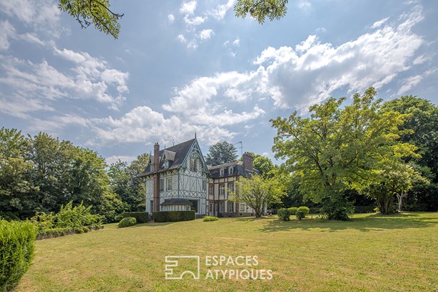 In the heart of the pleasant village of Saint Jean du Cardonnay, halfway between the urban bustle of Rouen and the bucolic Normandy countryside, this beautiful Anglo-Norman style property nestled in its green setting with secular trees offers a setting of privileged life out of sight.