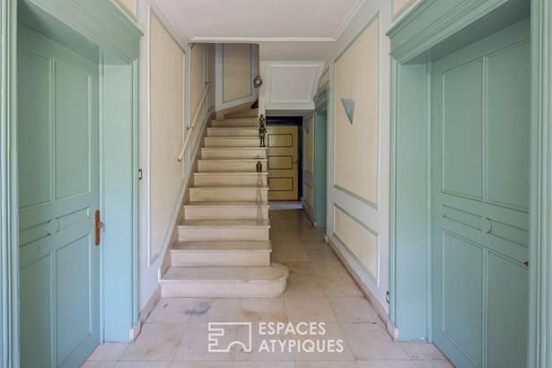Built in the 19th century, this charming ensemble consists of a generous main house with 422 m2 of living space spread over 3 levels. On the ground floor, beautiful reception rooms, on the first floor spacious suites, on the top floor numerous attic rooms with untapped potential.
