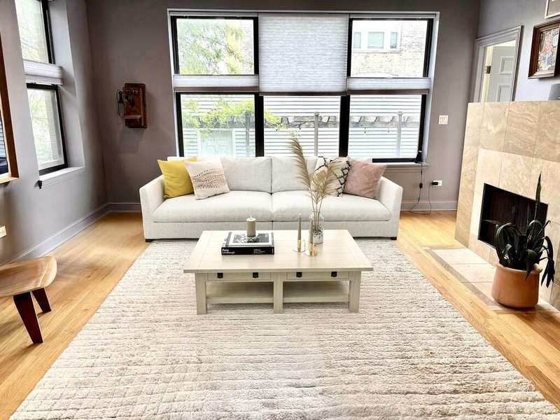 This spacious, rarely-available end-unit 4 BR/3 BTH Duplex lives like a single-family home. This fabulous Kenwood/Hyde Park location is perfectly situated near everything you could want, yet still perched on a quiet, tree-lined block. Near University of Chicago, Target, Trader Joes's and only a few blocks to the Metra Station and Lake Michigan. It boasts approx. 2500 sq. ft. on two levels and since it's a corner home, it faces 3 exposures - east, south and west. With so much light, this bohemian open-concept living area feels both both artistic and functional. Both floors have 10 foot ceilings, allowing maximum light. The upper level has hardwood floors, fireplace, recessed lighting and new custom up/down shades for ease of privacy. The kitchen boasts high-end LG appliances (ThinQ), and a granite island. The full dining area is large enough for entertaining. Then saunter into your Primary Bedroom ensuite with a recessed, backlit ceiling, lots of closets and a full bath with double-sink vanity, tub and shower. Completing this level is a nice-sized 2nd bedroom or guest room/office with an adjacent full guest bathroom with walk-in shower. Mosey on down to the lower level and enjoy a massive Entertainment/Family room that's big enough for a TV/streaming/gaming area - with still enough space leftover to allow for a playroom or a work-from-home area. Hope you have enough furniture to fill this enormous space! This level also includes 2 more bedrooms and a full bath, as well as a new high-end LG W/D laundry and storage. This standout home is nestled among single family homes and their gardens. You'll truly appreciate the lifestyle this home offers, and only blocks away from the charming University of Chicago campus, Hyde Park cafes, Whole Foods, shops and the convenience of an easy drive to downtown via Lake Shore Drive. Included in the price is your own garage space, as well as a lovely, gated common patio/grill area. Come and see this home soon before it's gone...