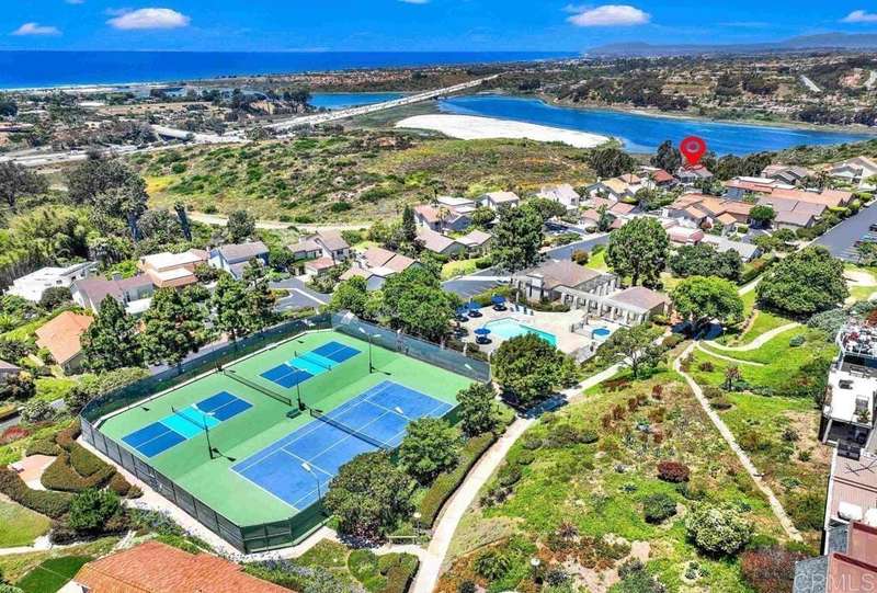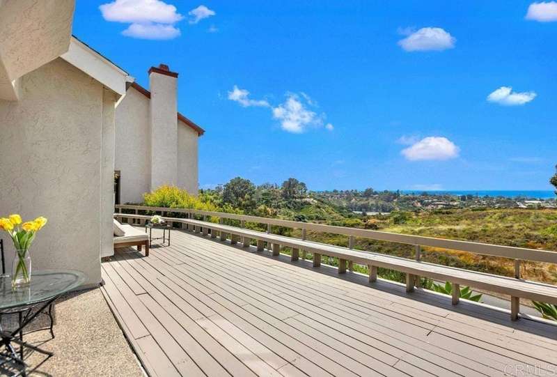 **Showing by appointment Saturday 11/15 -call agent for details.** Experience breathtaking coastal living from this rare corner-lot Skyloft home in Coastal Encinitas, offering sweeping 180 views from the Pacific Ocean to the Batiquitos Lagoon Ecological Reserve. This bright 3-bedroom, 2.5-bath residence features vaulted ceilings, engineered hardwood floors, modern bathrooms, and a newly remodeled rear deck designed to capture the panoramic horizon. Enjoy custom closets, a spacious two-car garage, and beautifully updated bathrooms with wood vanities, quartz countertops, and contemporary fixtures. Mid-Century Moderninspired lighting adds timeless coastal elegance, while community amenities include a saltwater pool, spa, tennis and pickleball courts, dog park, playground, and clubhouse. A perfect blend of modern design, coastal beauty, and relaxed beach-town living.