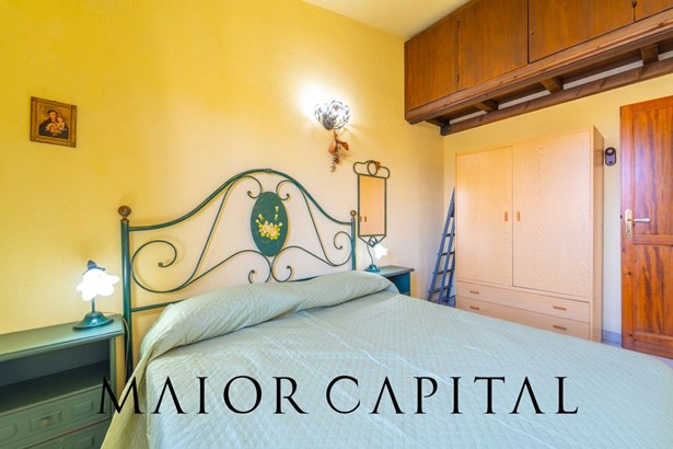 A practical hallway leads to the small bedroom, the windowed bathroom with shower and the master bedroom, from which one can enjoy a wonderful view of the island of Tavolara, an iconic symbol of the landscape of this stretch of coastline.