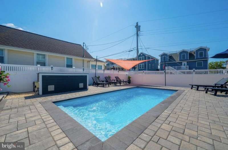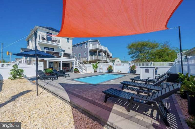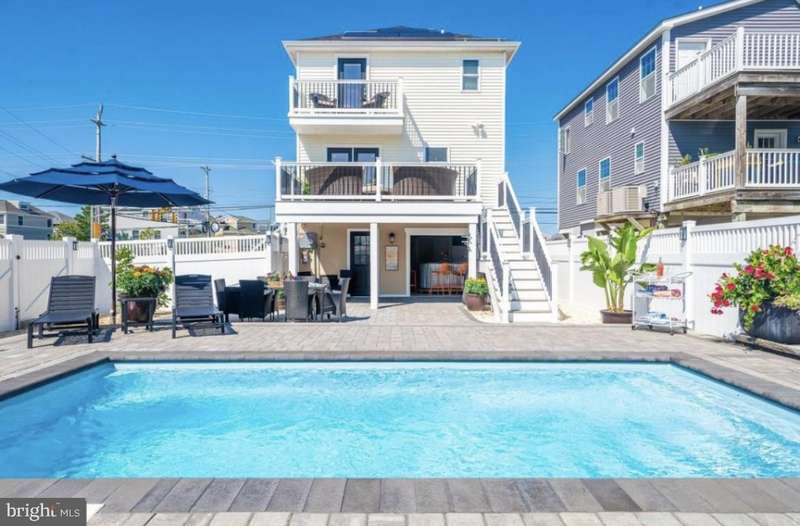 The seller is looking to sell 50% ownership of this Beautiful Home! This home has it all and is in pristine condition from top to bottom. When you enter this home there is a nice size foyer that has vinyl flooring and a bench area to take off your sandy shoes and flip flops, it then opens up to a large living room with windows that surround the room, open to the living room is a gorgeous custom kitchen with a large center island, quartz counter tops, stainless steel appliances, a tile back splash, white cabinets, a window above the sink overlooking the backyard, and breakfast room with French doors to the back deck, there is recessed lights and maintenance free vinyl flooring throughout, 9 foot ceilings, on the 3rd floor there are 2 large bedrooms for the kids, a nicely updated full bath, and a large primary bedroom with vaulted ceilings, a glass door to a private balcony and a beautiful primary bath. The first level or the garage level of this home offers an additional garage door that opens to the pool deck bar area, there is plenty of space for storage and a partial bath for the pool. The exterior options of this home seem to go on forever starting with the EP Henry paver driveway, the 2-car garage, fully fenced-in with white vinyl fencing, maintenance free vinyl siding, a covered front porch, solar panels on the roof, a large deck that overlooks the pool area that is trex decking, a multi level paver patio with an in-ground pool that is heated, and all of this on a large corner lot perfectly located only blocks from all the festivities that Beach Haven has to offer and two blocks to the beach! Don't miss your chance at this great opportunity!