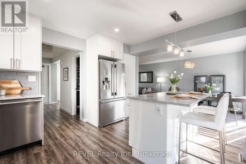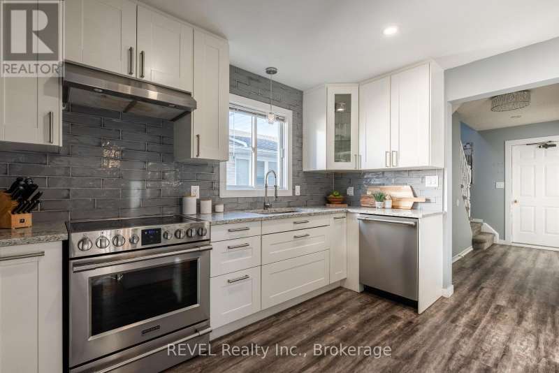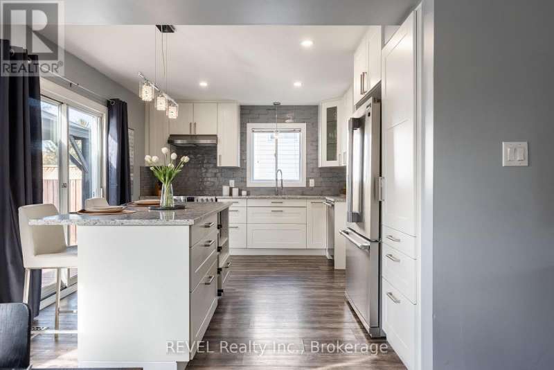 Prime location near the hospital, GO station, QEW, shopping, schools, and more, this spacious 3-bedroom, 3-bath two-storey home offers exceptional convenience and comfort. The main floor features a large foyer, 2pc bath, a light filled open-concept living and dining area, and a renovated eat-in kitchen with quartz counters, large island, stainless steel appliances. The glass sliding doors lead to a fenced backyard with deck, pergola, and hot tub. Upstairs, you'll find three generous bedrooms and a large 4 pc bathroom, while the lower level, accessible by a separate side entrance, offers a family room with games area, gas fireplace, laundry, workbench and a 2 pc bath. A single-car garage and double wide private driveway complete this well-appointed family home. (id:7434)