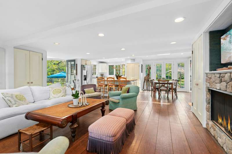 In the heart of Darien, where history lingers and owls whisper through the trees, stands a timeless 1800s home at 561 Middlesex Road - a place where memory breathes and dreams take root. Set upon 2.6 serene and level acres, yet close to all amenities, this enchanting farmhouse rests within a world of quiet beauty, where a secret garden path winds softly beneath the shade, inviting you to wander, reflect and simply be. Rich with the echo of generations, this home opens its doors to warmth and welcome with its wide plank floors, worn smooth by countless footsteps, that guide you through rooms that glow with quiet charm - from the parlor's embrace to the dining room's gentle light. At its heart lies a light-filled, open-plan kitchen, where aromas mingle with laughter and recipes become the language of love and memory, all while uniting you with the outdoors. A great room, crowned with exposed beams and centered by a wood-burning hearth, promises long evenings of conversation, storytelling and shared delight. A cozy den invites quiet moments with a favorite book, while a cheerful playroom offers a world of imagination for the young at heart. With four inviting bedrooms and 3.5 baths, this home offers space for family and friends alike. Here, every corner whispers of possibility - a sanctuary waiting for its next chapter, for new hands to shape its story, for new hearts to call it home. Within its walls, time softens, and life unfolds like poetry written in sunlight and laughter
