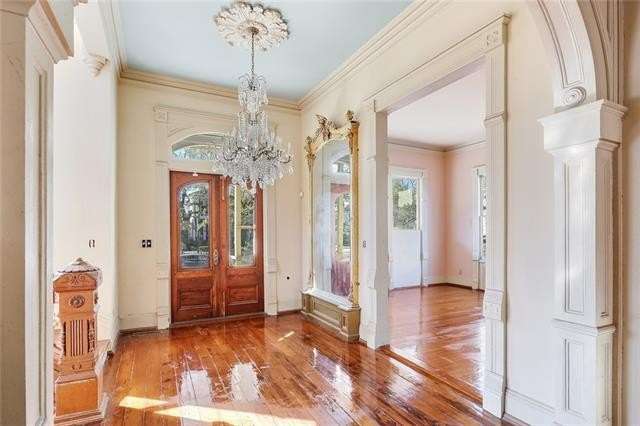 Own a piece of history on iconic St. Charles Avenue. Exterior now 60% complete. Remaining exterior elements have been mapped out for completion, with an available plan in place. Built in 1866, the Aldrich Genella House is an architectural gem. Originally a Greek Revival double gallery, the home was modified in 1878 with a third floor mansard roof and staircase tower. It is now considered one of finest residential examples of Second Empire style architecture in the South. Nestled on an oversized corner lot on St. Charles Avenue and Bourdeaux Street, with 127 feet of frontage, the gated grounds feature parking for several cars, a pool, and 200 square foot pool house. The foundation, roof and much of the exterior have been meticulously restored, including hand-crafted millwork featuring cypress & Spanish cedar. The interior, with an open/ modern floor plan, offers a blank slate for your own luxury finishes. Featuring: A jaw dropping 41ft. center hall entry, with exquisite archway moldings & medallions, a one-of-a-kind staircase, 3 flexible living areas, marble & mahogany mantels & soaring 13ft ceilings throughout. The Second floor features the primary suite, 3 additional bedrooms, a large front gallery, & a flat roof outdoor patio. The third floor is wood-cladded, with space for a den, guest room/ office plus 4th bathroom. The tower presents a very special observation room, with treetop views. A truly unique opportunity awaits you. Note: This is a renovation project.