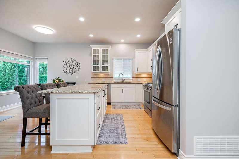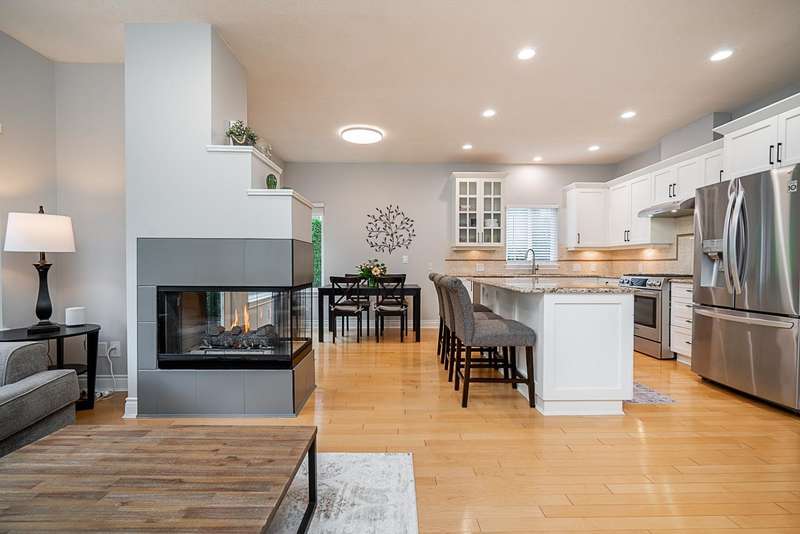 Welcome to sought-after Deer Run in Morgan Creek! This beautiful home offers a desirable floor plan with 3,539 sqft over two levels and thoughtful updates throughout. Main-floor living at its best with a primary suite, guest bedroom, formal living and dining rooms, a bright eat-in kitchen and cozy family room overlooking the peaceful greenspace. The lower level expands your living with two generous bedrooms, a versatile workshop/home office with walk-in storage, a gym and recreation room with a new stylish built-in bar! Enjoy outdoor living with expansive front and back patios, a double detached garage, oversized driveway parking, and newer furnace and A/C. An exceptional opportunity to enjoy comfort, space, and the Morgan Creek lifestyle.
