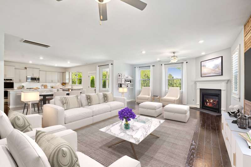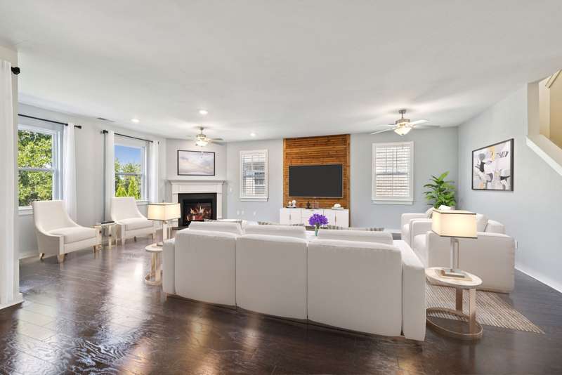 Back to active at no fault of the sellers. Buyers got cold feet! Welcome to this beautifully designed home where charm meets convenience. A covered front porch and elegant entry foyer with wainscoting set the tone, opening into an inviting open-concept floor plan. Hardwood flooring flows throughout the main level, highlighted by a cozy gas fireplace in the living room. The chef's kitchen is a true centerpiece, offering abundant cabinet space, a large center island, stainless steel appliances, built-in double oven, gas cooktop, and walk-in pantry. A guest bedroom and full bath on the main level provide comfort and flexibility for visitors. Upstairs, a spacious loft area offers the perfect spot for entertaining or relaxing, accompanied by three bedrooms and two full baths. The primary suite located upstairs impresses with wood beam accents, a generous walk-in closet, double vanities, and a luxurious walk-in shower. Step outside to enjoy multiple outdoor living spaces, including a covered back deck, patio, and steps leading to a cozy firepit area--perfect for morning coffee, evening wine, or roasting s'mores with friends. The community elevates your lifestyle with resort-style amenities and thoughtfully designed spaces, featuring a clubhouse, fitness center, pool, playground, tennis and pickleball courts, volleyball, dog park, and walking trails. Residents also enjoy treed sidewalks, landscaped public areas, open green space, a picnic area, and outdoor grilling stations--ideal for gathering and enjoying the outdoors. Adding to the convenience, the neighborhood entrance includes a variety of retail and office options, such as Strong Health and Wellness, ECCO Salon, Ambiance Organic Nails Spa, and Pink Greens. You'll also find local favorites like Mojo's Tacos, Village Pizza Company, The Good News Bread Company, and Corfit, along with medical offices, a hardware store, and other everyday essentials nearby.