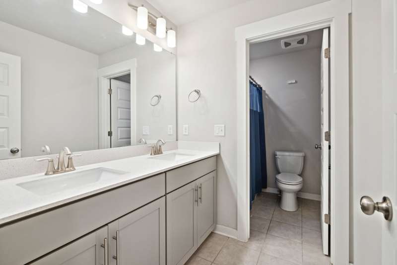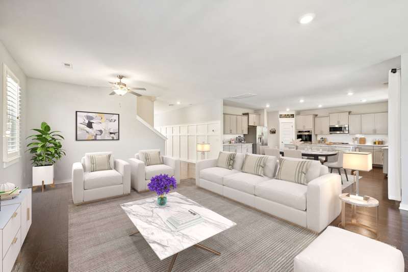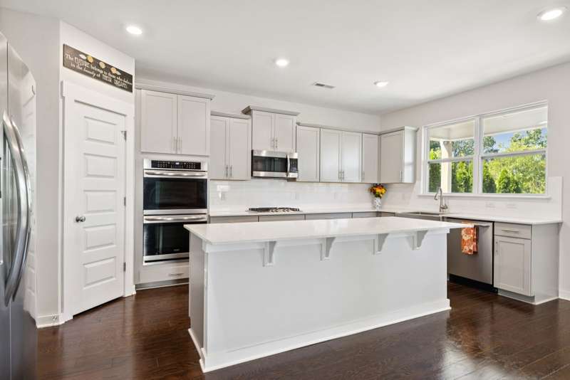 Welcome to this beautifully designed home where charm meets convenience. A covered front porch and elegant entry foyer with wainscoting set the tone, opening into an inviting open-concept floor plan. Hardwood flooring flows throughout the main level, highlighted by a cozy gas fireplace in the living room. The chef's kitchen is a true centerpiece, offering abundant cabinet space, a large center island, stainless steel appliances, built-in double oven, gas cooktop, and walk-in pantry. A guest bedroom and full bath on the main level provide comfort and flexibility for visitors. Upstairs, a spacious loft area offers the perfect spot for entertaining or relaxing, accompanied by three bedrooms and two full baths. The primary suite located upstairs impresses with wood beam accents, a generous walk-in closet, double vanities, and a luxurious walk-in shower. Step outside to enjoy multiple outdoor living spaces, including a covered back deck, patio, and steps leading to a cozy firepit area--perfect for morning coffee, evening wine, or roasting s'mores with friends. The community elevates your lifestyle with resort-style amenities, including a clubhouse, fitness center, pool, playground, tennis and pickleball courts, volleyball, dog park, and walking trails. Even better, the neighborhood entrance features convenient local favorites such as Mojo's Tacos, Village Pizza Company, The Good News Bread Company, Corfit, and more, along with medical offices, a hardware store, and everyday essentials. This home truly offers the perfect blend of stylish living, community connection, and everyday convenience.