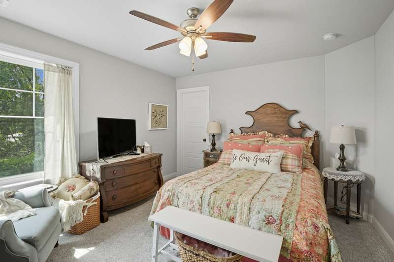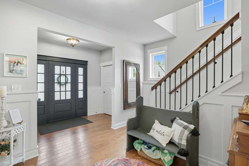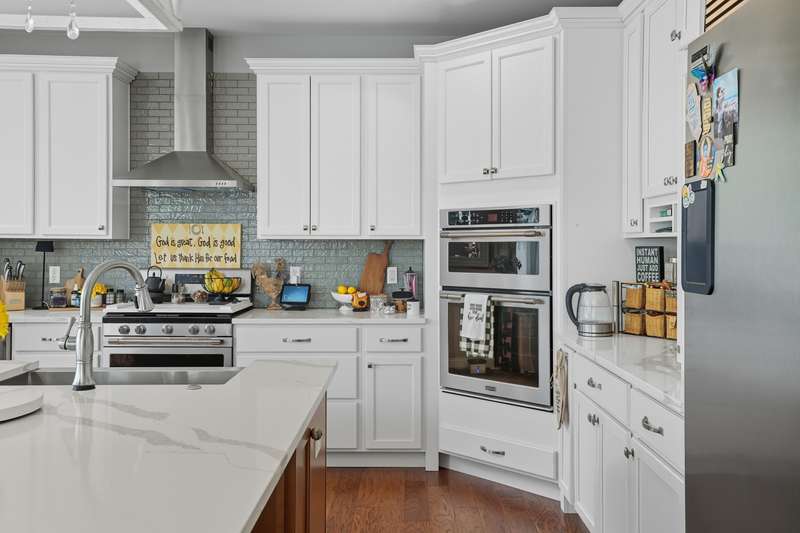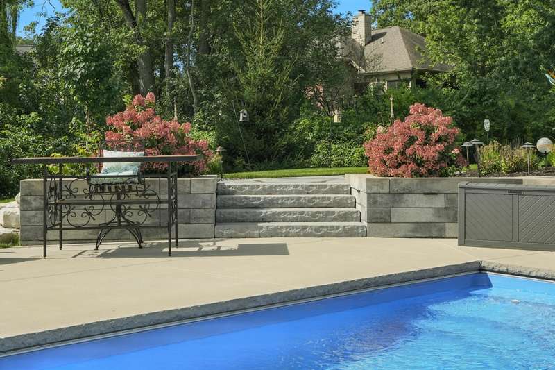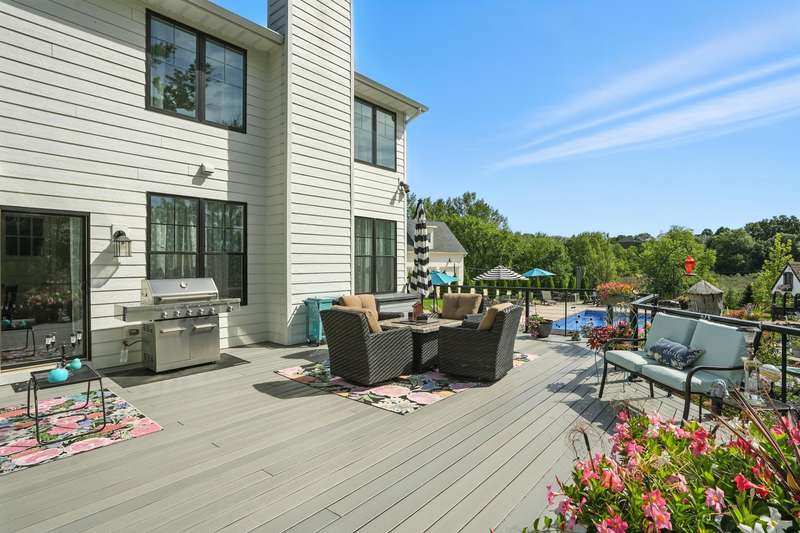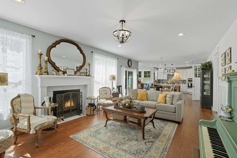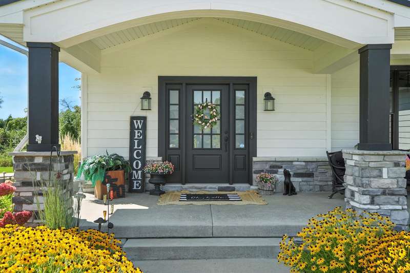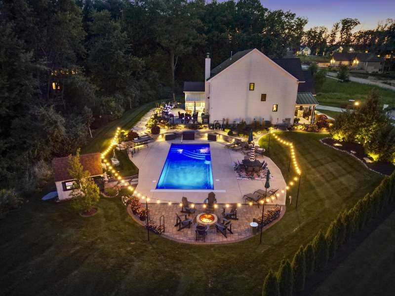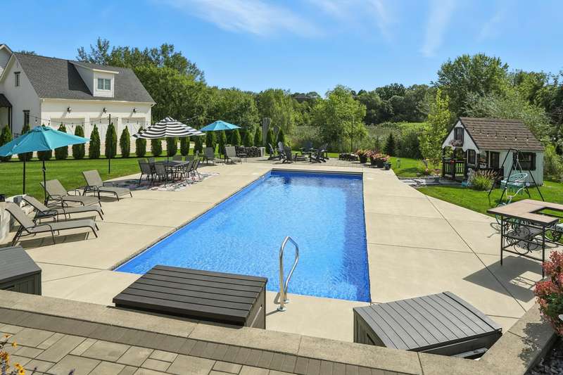 Welcome to this exquisite custom-built two-story home, perfectly situated on a serene .88-acre cul-de-sac lot, offering a peaceful and private wooded view that creates a tranquil atmosphere. As you approach the residence, you'll be greeted by a charming covered front porch, ideal for relaxing with a morning coffee or enjoying evening sunsets. Step inside to find an inviting foyer that seamlessly leads you into the great room, which features a stunning fireplace that adds warmth and ambiance, perfect for cozy evenings with family and friends. This space boasts a perfect blend of elegance and comfort. The open-concept kitchen is a culinary delight, featuring an oversized island that provides ample seating for gatherings, a spacious walk-in pantry, and a convenient mudroom. Sunlight floods the four-season room through an abundance of windows, creating a bright, airy space that's perfect for year-round enjoyment. The luxurious master suite is a true retreat, complete with an enormous walk-in closet, additional storage closets, and a spa-like master bathroom, ensuring your comfort and relaxation. The home also features three generously sized additional bedrooms and a well-appointed full bathroom, making it perfect for family living or entertaining guests. The main level is adorned with beautiful hardwood floors, adding warmth and sophistication. Step outside onto the expansive maintenance-free deck that wraps around the back of the home, complete with a powered awning to provide shade when desired, perfect for outdoor dining and entertaining. The professionally landscaped yard is nothing short of stunning, anchored by an inviting inground pool that serves as the focal point of the outdoor space. This backyard oasis features a cozy fire pit and a charming playhouse, coupled with ample grassy areas for hosting gatherings with friends and family. Unfinished basement is roughed in for future bath and finishing. 3.5 car garage is perfect for all your storage!