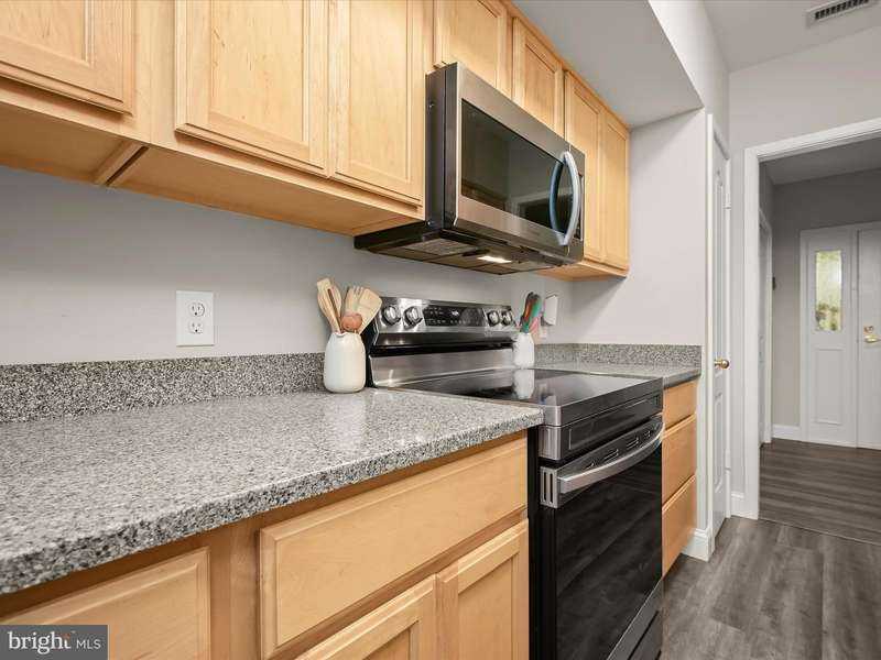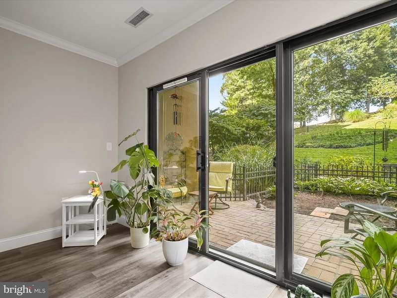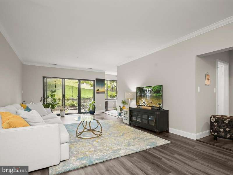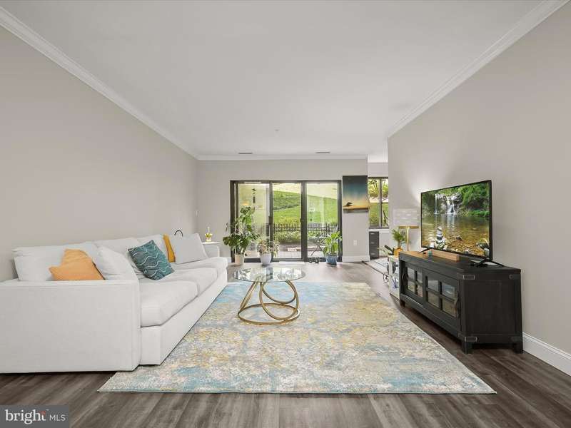 Introducing this spectacular one bedroom, one bathroom first floor garden style condo in the sought-after Watermark Place in the heart of vibrant Columbia. Beautifully manicured grounds welcome you, and inside, the secure lobby includes a doorman. Remodeled in 2023, this inviting unit features a modern neutral color palette with new flooring, stainless steel appliances, water heater, and HVAC system with an Ecobee smart thermostat. Step inside the foyer with a convenient coat closet for storing essentials. The kitchen offers a pantry, granite counters, and an appliance garage, opening to a dining area for everyday meals. The expansive living room showcases elegant crown molding and sliding glass doors leading to a large fenced courtyard with patio and garden, backing to lush greenery for a peaceful setting. Down the hall, the spacious bedroom has a walk-in closet, while the bathroom has both a walk-in shower and separate tub. Completing the unit is a utility closet with full-size stacked washer and dryer. Additional conveniences include a storage locker down the hall, and an assigned parking space in the secure garage with inside access. Residents enjoy amenities with an outdoor pool, fitness center, club room, mail room, and fenced dog park, along with scenic walking paths around Wilde Lake with a fishing pier and playground. Explore Columbia Town Center just moments away with a wide variety of excellent shopping, dining, entertainment options with The Mall in Columbia, Merriweather District, Lake Kittamaqundi Waterfront, Merriweather Post Pavilion, and so much more, with quick access to Routes 29 and 175.
