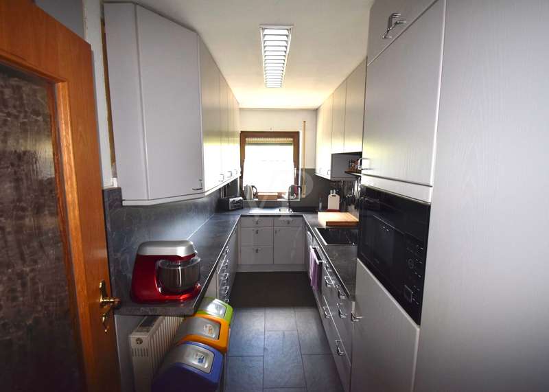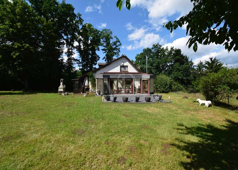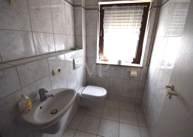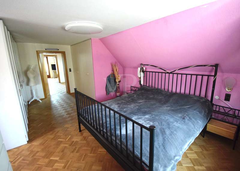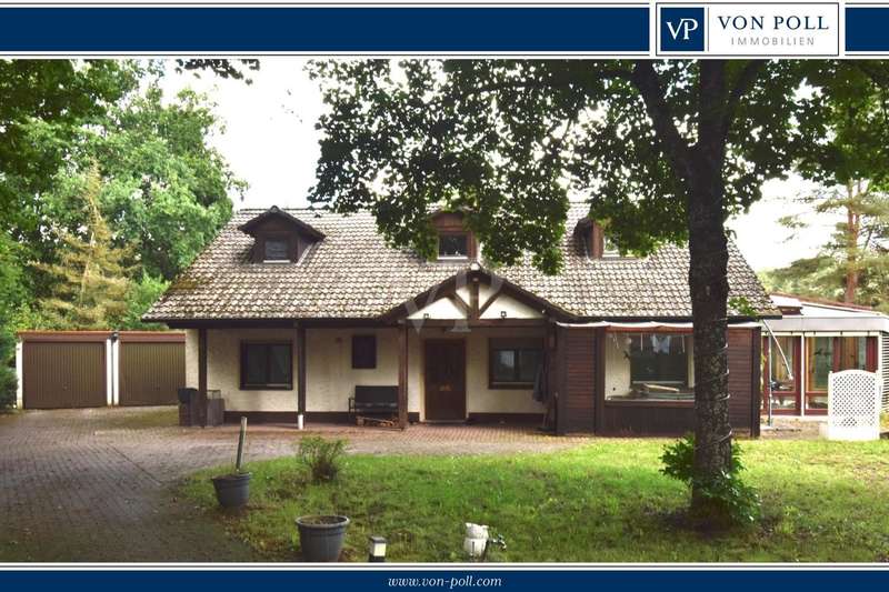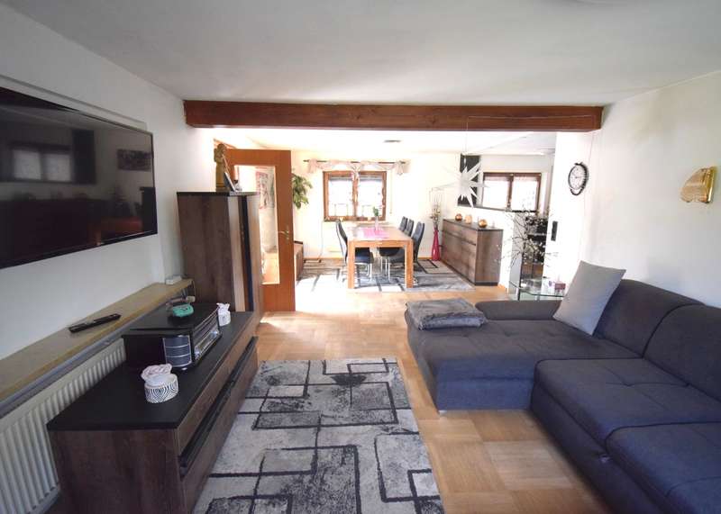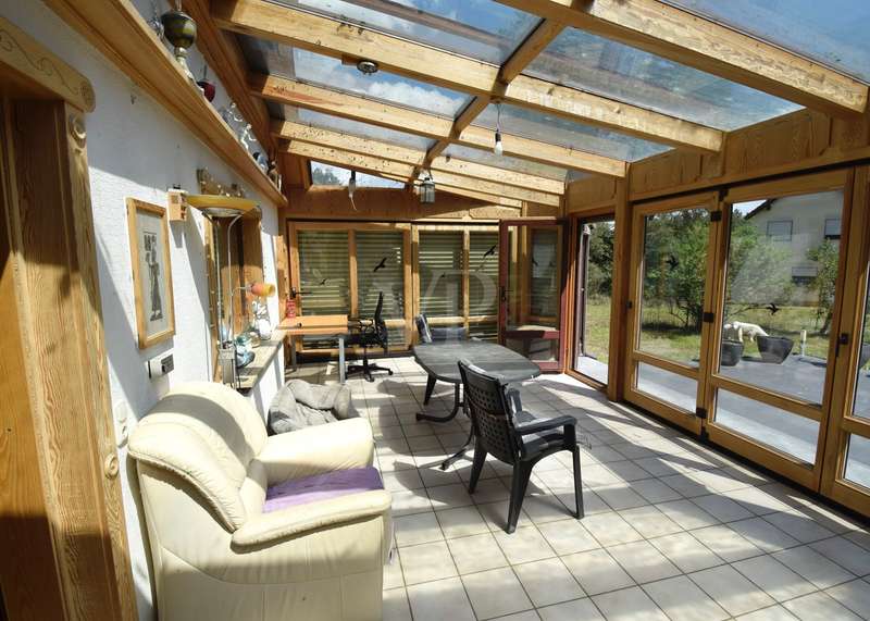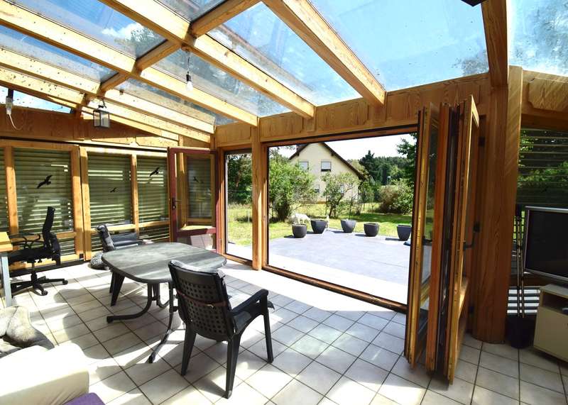 This property offers a rare opportunity to acquire a spacious plot in an almost secluded location. The main plot comprises approx. 1,931 m², supplemented by a directly adjoining wooded plot of approx. 1,383 m², which guarantees additional peace and privacy. There are two residential buildings on the plot, one of which has a spacious, integrated wellness area. The extensive garden is laid out like a park and offers a wide range of opportunities for recreation and leisure activities. The property is characterized by upscale furnishings, well thought-out floor plans and a particularly pleasant living ambience. It is ideal for sophisticated living, multi-generational use or the combination of living and working in a natural environment. The main house was built in 1945 and extensively renovated and extended in 1995. The property is in a well-kept condition and offers a well thought-out room layout on two levels. On the first floor there is a kitchen, a daylight bathroom and a spacious living and dining area with an integrated bar. The living area has a fireplace and is complemented by a conservatory, which provides plenty of natural light and a beautiful view of the outside. A further bedroom on the first floor offers additional flexibility of use. The upper floor comprises a spacious master bedroom with two separate dressing rooms, a modern shower room and a further room suitable as a children's room or office. There is access to a balcony from this room. Heating is provided by an oil-fired central heating system. The building has a full basement and thus offers additional usable space for storage, technology or hobbies. House 1 was built in 1995 and is in a well-kept condition. On the upper floor there is a well-designed residential unit consisting of a large living and dining room, a bedroom and a bathroom. The apartment is ideal for use as a granny apartment or for renting out. An indoor pool is integrated on the first floor, which is currently covered with a vinyl floor and used as additional usable space. The complete swimming pool technology, including counter-current system, softening and salt system as well as solar support, is housed in the basement. A spacious wellness area with kitchen, relaxation room, steam bath and changing area offers a variety of uses for relaxation and leisure activities in your own home. The building is heated by an oil-fired central heating system, also located in the basement. The property has 5 garages, including a large garage for mobile homes.