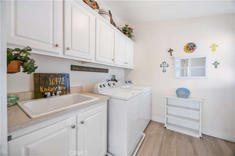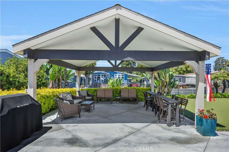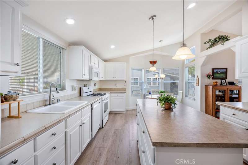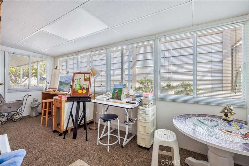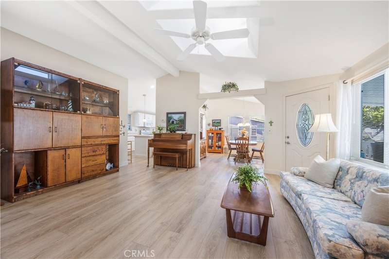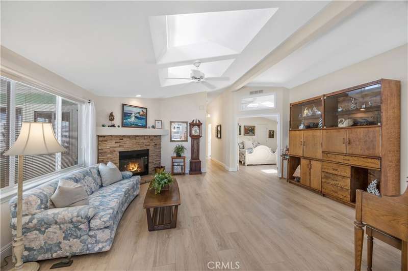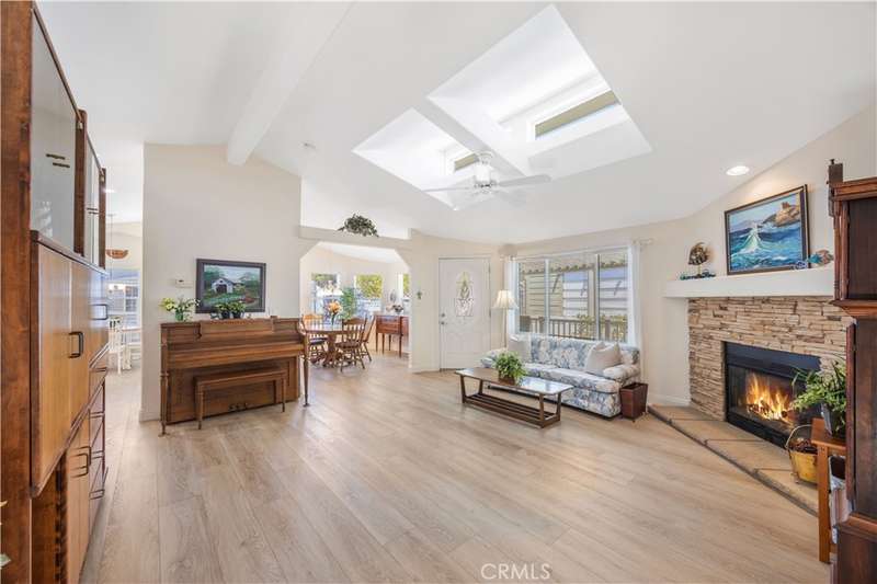 Live the coastal lifestyle just minutes from the beach, harbor, and scenic trails in this bright 3-bedroom home on a sunny corner lot. Vaulted ceilings, skylights, and a stacked stone fireplace welcome you into the open living area. The formal dining room flows into an updated kitchen with a large island, breakfast nook, pantry with roll-out drawers, and abundant cabinet space. The spacious primary suite features a walk-in shower, makeup vanity, and excellent storage. A second bedroom offers a skylight and walk-in closet. The versatile third bedroom opens to a fully enclosed porch currently used as an art studio, with access to a private rear patio--ideal for guests, work, or creative space. Additional highlights include newer luxury vinyl flooring, fresh paint, full laundry room with sink, driveway parking, and a shelved storage shed off the carport. Huntington Harbour Village is a 55+ land-owned community with a remodeled clubhouse, pool, spa, fitness room, game lounge, putting green, BBQ area, and RV parking.
