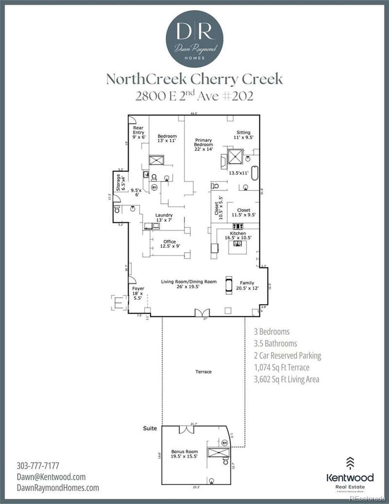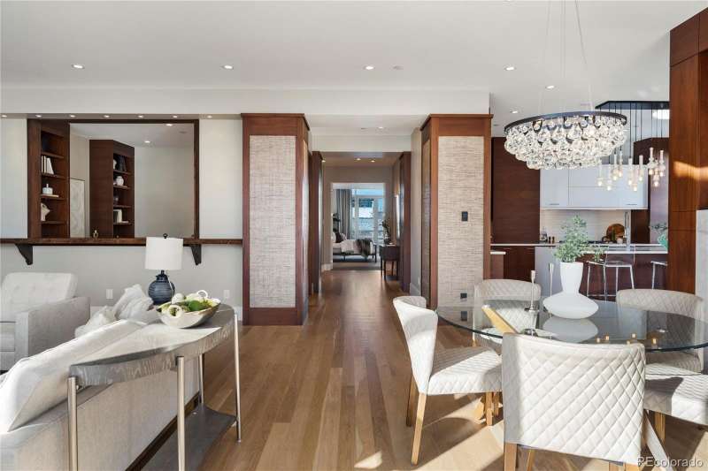 Experience elevated living in the heart of Cherry Creek North! Step into refined luxury with this exceptional 3-bedroom, 3.5-bath residence occupying half a floor in the prestigious NorthCreek FlatsCherry Creek Norths only private, gated & full-service community. A private elevator opens directly into your home, revealing a thoughtfully designed open-concept layout bathed in natural light from expansive floor-to-ceiling windows. Enjoy seamless indoor-outdoor living w/ an oversized private terraceover 1,000 sq ftperfect for al fresco dining, lounging, or entertaining around the fire pit. The interior blends mountain charm with urban sophistication, featuring elegant finishes, rich textures, and a warm, contemporary aesthetic. The chefs kitchen is a culinary dream, outfitted with sleek cabinetry, a stylish island, Wolf double ovens and gas range, Sub-Zero refrigerator, and a dedicated wine cooler. A double-sided fireplace adds ambiance, separating the formal living and dining areas from a cozy family room. Retreat to the spacious primary suite, complete with a sitting area, fireplace, and spa-like en-suite bath featuring dual vanities, a soaking tub, glass-enclosed shower, and a generous walk-in closet. A second bedroom with its own en-suite ensures privacy and comfort for guests.A rare bonus, the separate casitaone of only two in NorthCreekoffers flexible space for a guest suite, home gym, or creative studio, complete with a 3/4 bath. Additional highlights include a dedicated office, a well-appointed laundry and storage area, and two reserved parking spaces in a secure underground garage. All of this, just steps from the premier shopping, dining, and cultural experiences that make Cherry Creek North one of Denvers most sought-after neighborhoods. This is a one-of-a-kind opportunity to live in style and comfort in the heart of it all.