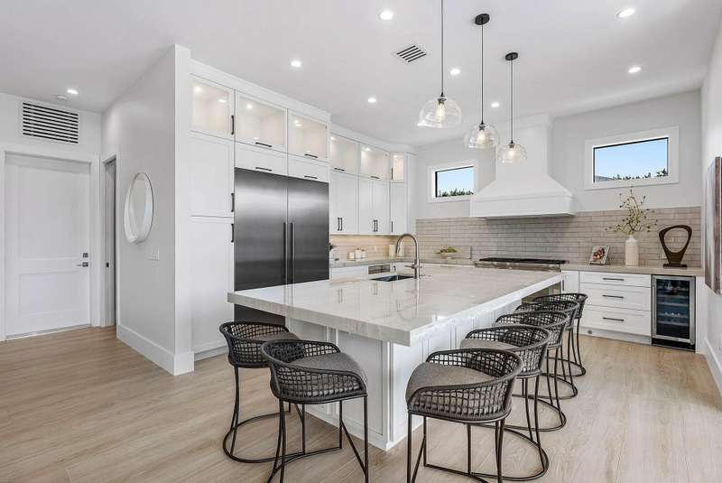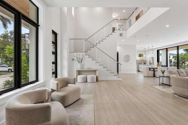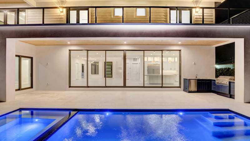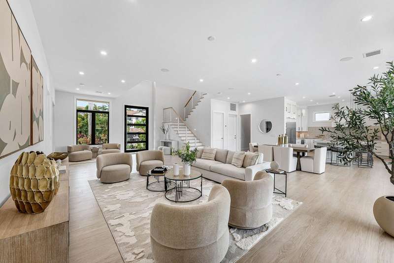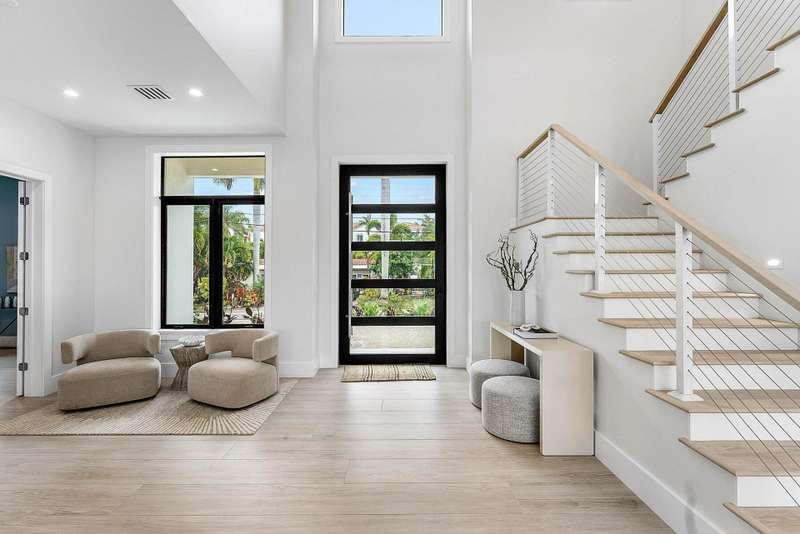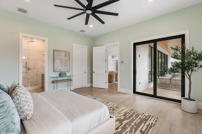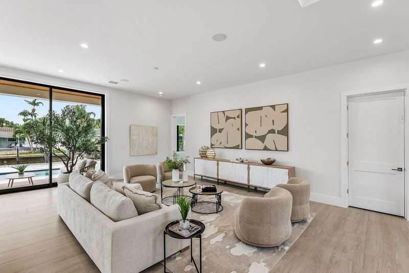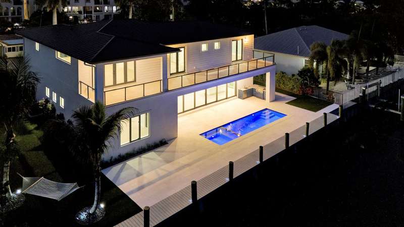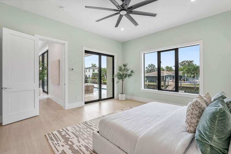 Welcome to 101 feet of direct waterfront on a private road in unincorporated Delray Beachs coveted 33483. This brand new residence offers a new seawall and dock, 5 bedrooms, 7 bathrooms and 5644 total sqft (4621 under air) with thoughtful spaces for work, play, and relaxation.Beautifully designed kitchen featuring a full Thermador appliance suite--6-burner dual fuel range with griddle, double oven, and sleek finishes flowing effortlessly into the expansive living and entertaining space where natural light pours in from every angle.Giant pocket sliders disappear like a curtain of glass blending indoor comfort with outdoor living. Step onto the covered loggia with a full summer kitchen, built-in grill, bar seating, cabana bath and outdoor shower--perfect for entertaining. The saltwater pool and spa are surrounded by travertine decking with expansive turf side yard offering a polished, low-maintenance outdoor retreat. Upstairs, the primary suite is a true sanctuary complete with a morning wet bar, a spacious covered terrace with wide water views and a luxurious bathroom with soaking tub, dual vanities, dual showerheads and two oversized walk-in closets. With space for a gym, studio, or office and an elevator for added convenience, this home brings together style, function and waterfront elegance in one unforgettable package.