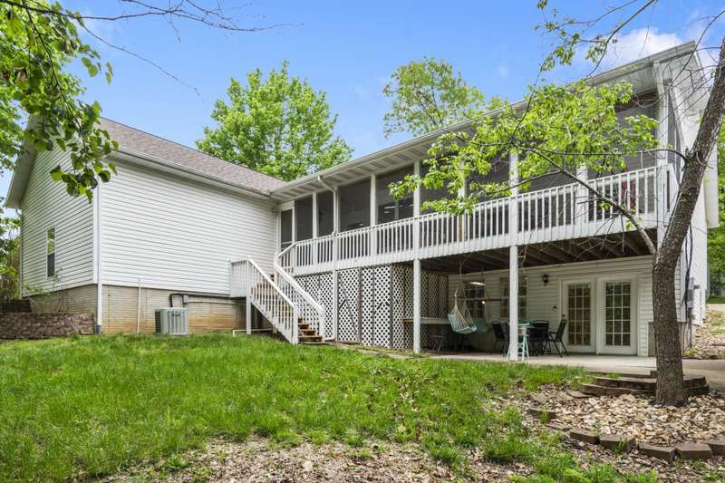 Welcome home to this beautiful 3,744 sq ft, 2 story gem! Gorgeous hardwood floors, granite countertops, vaulted ceilings, a screened in deck, 2 covered porches, a bonus room on the lower level, (perfect for a gym or an office), a 21 jet jacuzzi, and so much more. There is an in ground sprinkler system for the yard, as well as pest control. In addition, the exterior was just treated in March as part of the quarterly schedule. The lower level may be used for a full mother in law suite or for long term renters. It boasts of a large primary bedroom with walk in closet, large living area and kitchenette, along with a bathroom and that awesome bonus room with storage as well. The crawl space is large enough to walk upright throughout and is coated to prevent radon and of course pests. This lower level has its own entrance with French doors, covered porch, and carport! The roof is only 5 years old, and the seller just installed a new dishwasher as well. Upstairs you'll enjoy your exquisite kitchen with cabinet lighting, top of the line appliances, granite countertops, and more storage than most could ever use! The garage is a dream come true with a high ceiling and storage options galore. Have I mentioned the curb appeal?! This home absolutely welcomes you right in with such warmth, you can't help but smile. The primary suite on the main level is open to the expansive primary bathroom, consisting of double sinks, that jetted jacuzzi, a walk in shower, separate water closet, and a large walk in closet with plenty of space for 2 wardrobes. The main living area can easily hold several pieces of furniture, including sectionals. This lovely home is only a few minutes from the Branson Strip heading north in either direction or 5 minutes to either Lake Taneycomo or Table Rock Lake heading south/southwest. It can't get much more perfect than that, and I cant wait for you to see it!