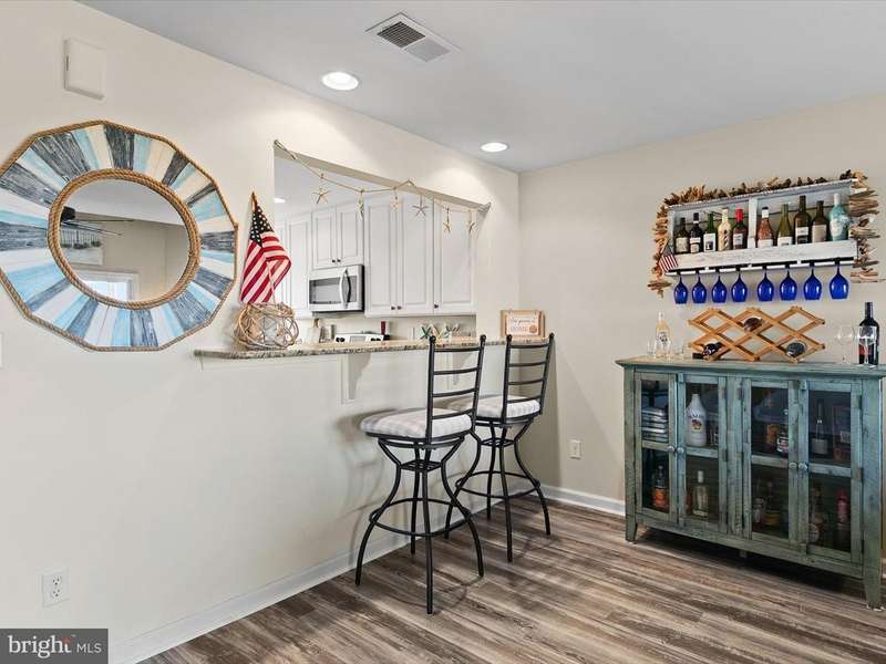 Welcome to 30112 Big Marsh Court, Unit 6505, a rare opportunity to own a top-floor, four-bedroom, four bath, coastal condominium in the sought-after community of Bethany Bay, where nature and water views steal the show. From this elevated vantage point, sweeping panoramas of the preserve, ponds, and bay unfold before you, with wildlife and coastal breezes creating the perfect backdrop for every moment of your day. Step inside and discover an inviting living area with a two-story ceiling, anchored by a cozy electric fireplace and framed by windows that draw in soft natural light and endless views. Follow the breezes to the screened porch, a serene retreat where you can savor your morning coffee or unwind with an evening libation while taking in the ever-changing canvas of the bay. Out front on this level, a sun-drenched open-air deck offers another perfect spot to enjoy sunset. The eat-in kitchen is beautifully appointed with granite countertops, stainless steel appliances, and a bi-level breakfast bar for casual dining. An adjoining light-filled dining area welcomes gatherings large and small, where laughter and conversation flow as easily as the views beyond. The primary suite is a private sanctuary where you can wake to tranquil water vistas and fall asleep to the hush of bay breezes. The ensuite bath provides comfort and privacy. A guest bedroom on the main level offers its own private access to a full bath, ideal for visiting family or friends. Ascend the staircase to discover two additional guest suites, each offering its own ensuite for the ultimate in comfort and privacy. One enjoys a peaceful water view, while the other offers a spacious sitting area with a charming dormer reading nook, perfect for quiet moments with a book or a cup of tea. Design-inspired touches are found throughout, including wood accent walls, nautical-themed lighting, and coastal decor that create a sense of effortless seaside style. This home is being sold furnished (with a few exclusions), making it ready for your immediate enjoyment. A garage is included and provides ample space for your beach toys, golf clubs, and kayaks. Bethany Bay's resort-style amenities invite you to embrace the coastal lifestyle, offering a seasonal pool, 9-hole golf course, fitness center, boat ramp, boat and kayak storage, tennis and pickleball courts, and a clubhouse for social gatherings. All this, just minutes from Bethany Beach and its iconic boardwalk, local restaurants, boutique shopping, state parks, and marinas, all with lower HOA fees than most communities in the area. Come see this hidden gem perched above the bay, where every day feels like a vacation. Life is short-buy the beach house.
