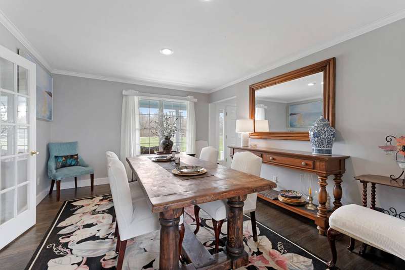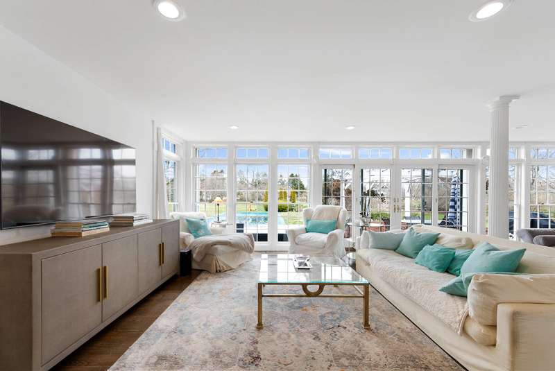 RR# RP170661. This beautiful 4-bedroom, 3.5-bathroom home is just moments to Southampton Village shops, restaurants, and ocean beaches. It is sited on over 3 private acres and surrounded by fruit orchards and horse farms. Fabulous kitchen for entertaining, a gym, sunny pool area, plus other wonderful amenities. Listing ID#: 755716