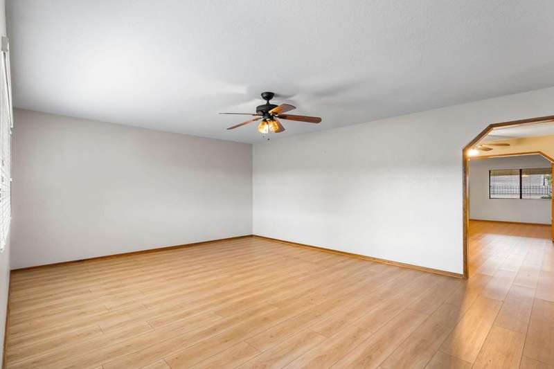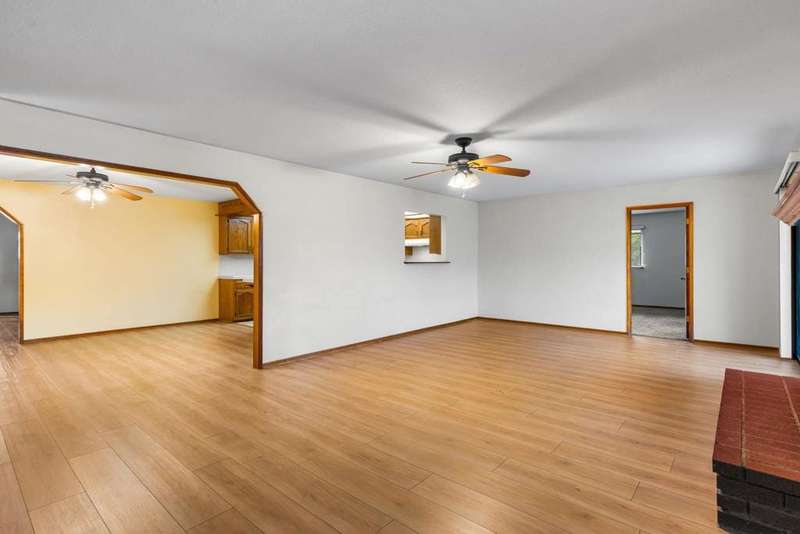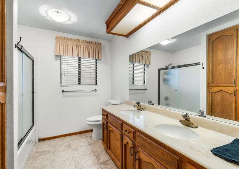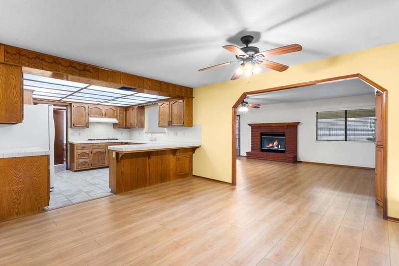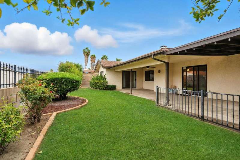 Well maintained McMorran single-story ranch style home located within a quiet neighborhood of beautifully maintained homes. The open floor plan offers a spacious living room, a large family room with brick fireplace and sliding glass doors to the private rear yard with a covered patio and mountain views. The kitchen, adjacent to the dining area, has ample counter space and a breakfast bar - ideal for large gatherings. All four bedrooms are very spacious, with the primary suite set apart from the other bedrooms, affording privacy for all. Nice laminate flooring and newer carpeting. Nearby amenities include; Little Lake Recreation Area, Ramona Bowl Amphitheatre and Diamond Valley Lake which is open to boating, fishing, hiking and other recreational activities. Also nearby are Soboba Springs Golf Course, Casino and Historical Hot Mineral Springs. No HOA.