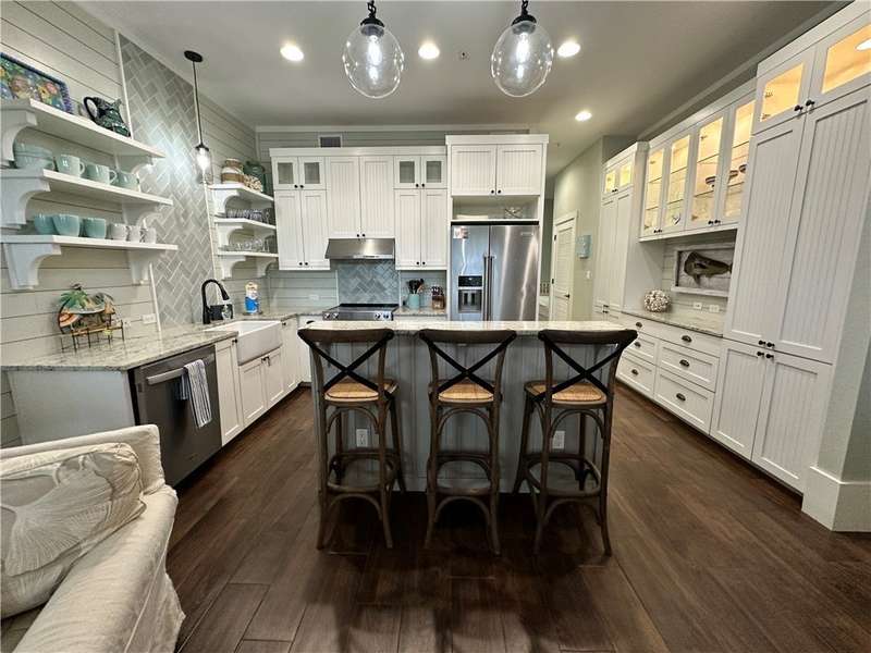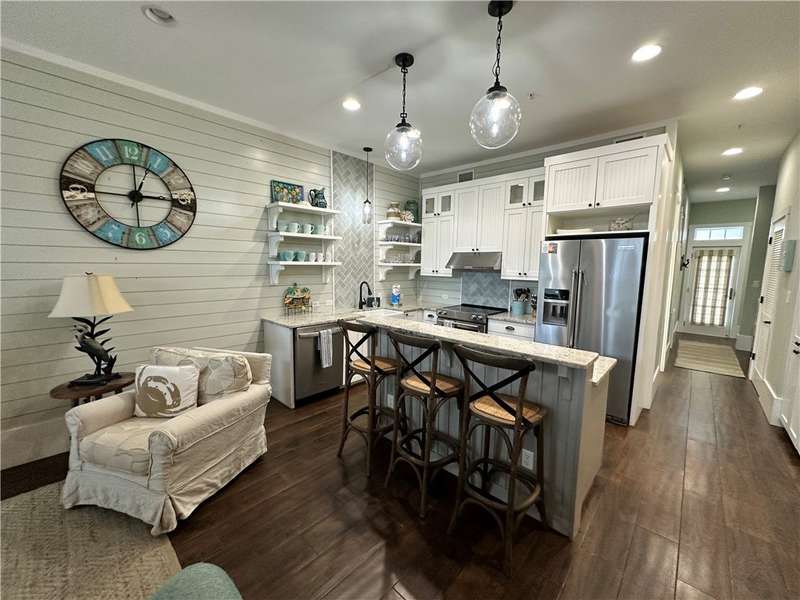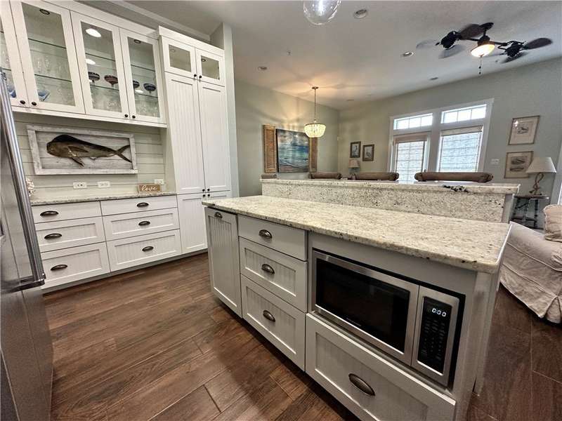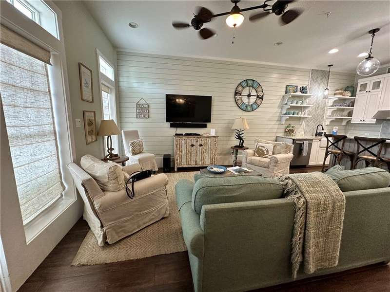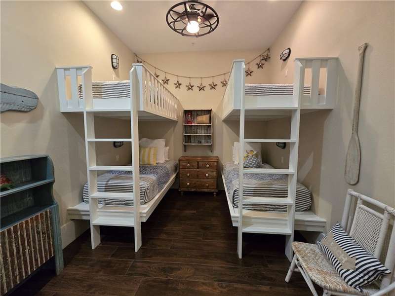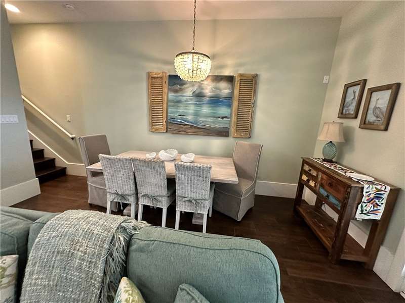 A Gathering Place offering enjoyment. Cinnamon Shores refers to "community" beach time, fun time for all. This exquisite 2 story unit with ground floor entry is just across the street from the Central Social Circle grounds, pool, restaurants, etc. will comfortably sleep 10-11 people. Sale includes beautiful furnishing and ready for immediate use and occupancy. On the ground floor walk into a delightful open concept living/dining/ kitchen area with just the right amount of shiplap and island magic to prove attention has been paid to each detail. There is one first floor suite, plus a fun day bed and 2 upstairs private bedrooms with 2 baths, plus a fun bunk room for four that offers access to a balcony. All designed to provide each one a space their own. Cinnamon Shores North is a most warm and welcoming resort community to appeal to the those seeking the active beach enjoyment, cook-outs, walk in restaurants or maybe a hideaway with a good book. We think you'll find Cinnamon Shores to be Padre Island's brightest 4-star, maybe even 5 star place to be. If investment is your desire, you'll be happy to learn from the Office all about that and the details involved with the Rental Program. Monthly fee also includes internet/cable w/Infinity. Great Rental program can make this a satisfying getaway for you and for others.