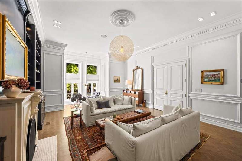 The iconic Gold Coast Newberry Mansion by Washington Square Park. Luxury awaits you at this 3 bed 3.5 bath unit. Showcased on the front page of Luxe Magazine. This extraordinary residence, captures you at the moment you enter, it is evident that every detail-every finish, every material-was selected with the highest level of intention and refinement. 12' ceilings, beautiful moldings and built-ins on all levels. Large custom white eat in kitchen, marble counters, high end appliances and fixtures. Main floor features the living room with a stunning black lacquered built in wall unit, beautiful butlers pantry and a half bath. Beautiful staircase leads up to the 3rd floor that offers a luxurious primary suite with incredible finishes and fixtures, a second large bedroom, full bath and laundry room. 3rd bedroom is situated so it can be used as an office or play room as well. Nothing in this market compares...this 6 unit building has an elevator and a beautiful large shared roof top. Parking easy to lease at 21 Chestnut next door. Monthly HOA $1,212
