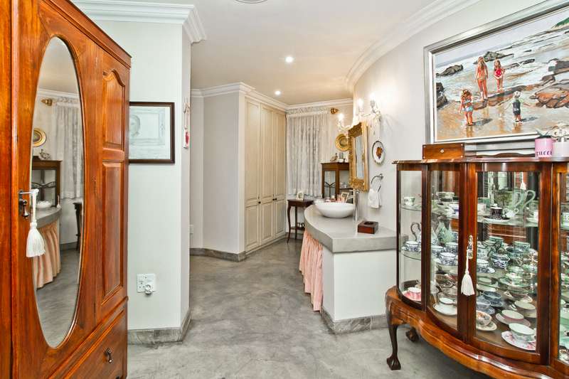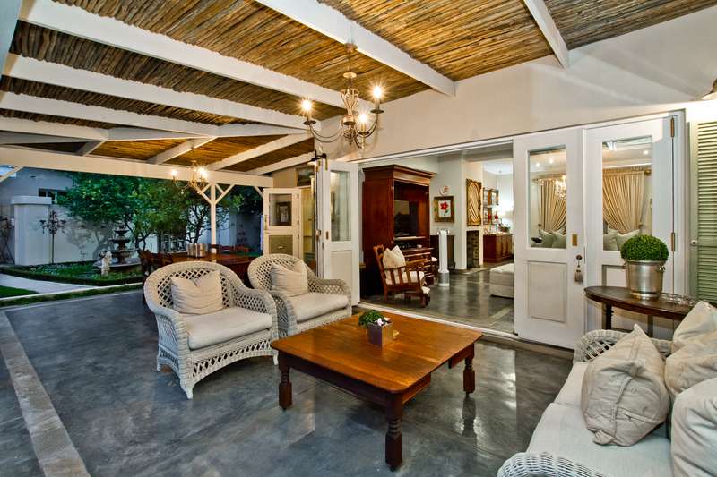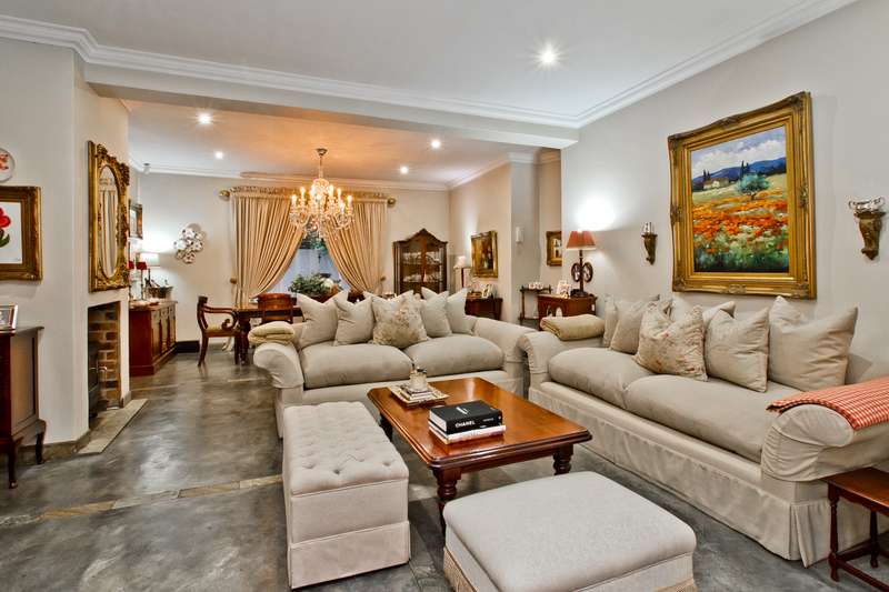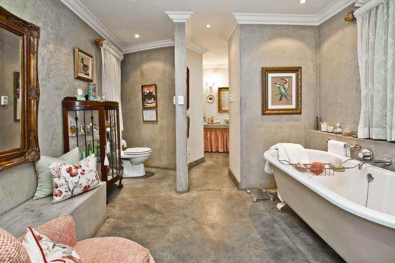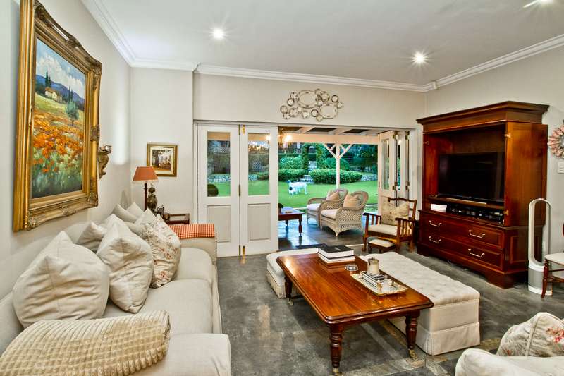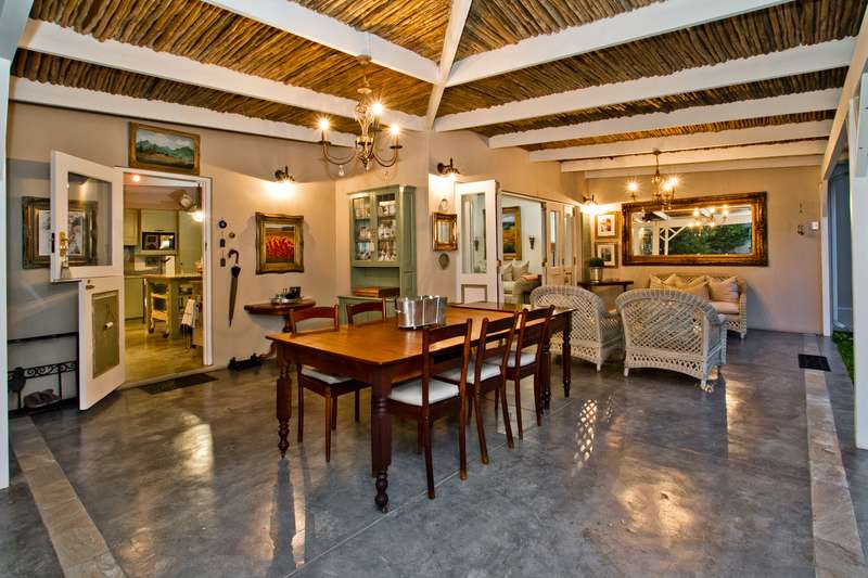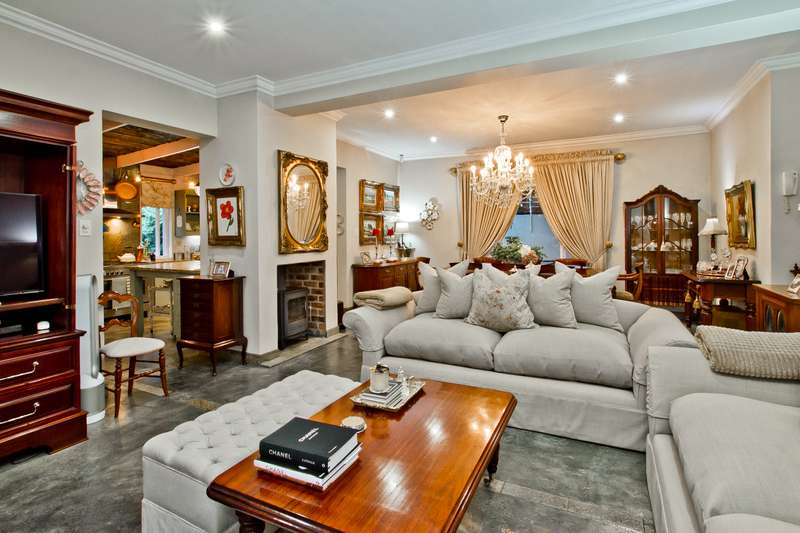 Step into country charm with this exquisite farm style house boasting 3 bedrooms with massive bathrooms and a cozy self contained cottage. Securely nestled and beautifully maintained, this home is set within a complex like setting of 4 homes. This home features concrete screeded floor for easy upkeep and rustic elegance, meticulously designed eat-in kitchen with a gas stove and loads of cupboard space. Expansive receptions showered with sun-light & a Morso fireplace all leading onto a massive entertainers’ patio overlooking the landscaped garden. A Borehole with filtration system is used in the home and in the garden with an automated irrigation system. Solar geyser and solar outdoor lights also help to keep your bills down. Experience the tranquillity of this property with the expansive manicured garden and generous parking space, 3 carports and loads of space for guest parking. Also separate staff suite and laundry room. This timeless charm and serenity must be experienced to be appreciated.
