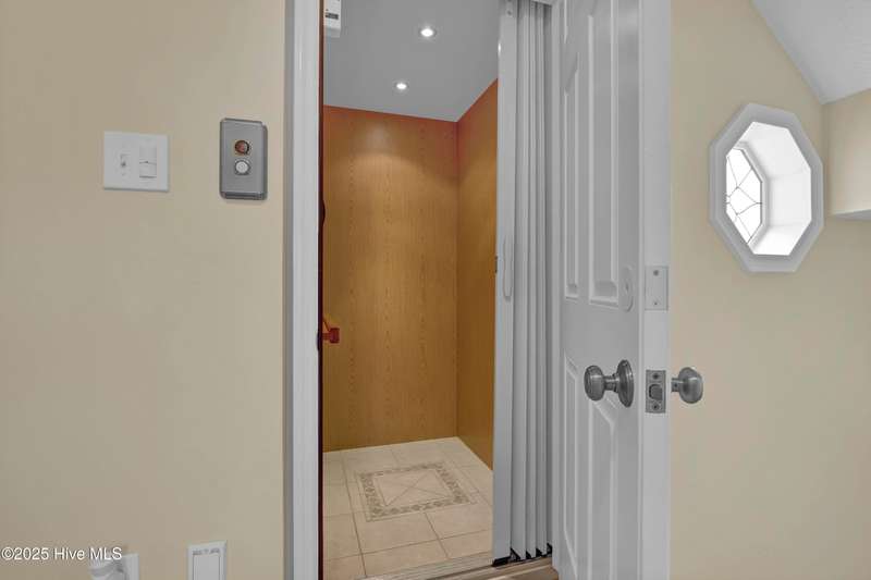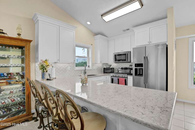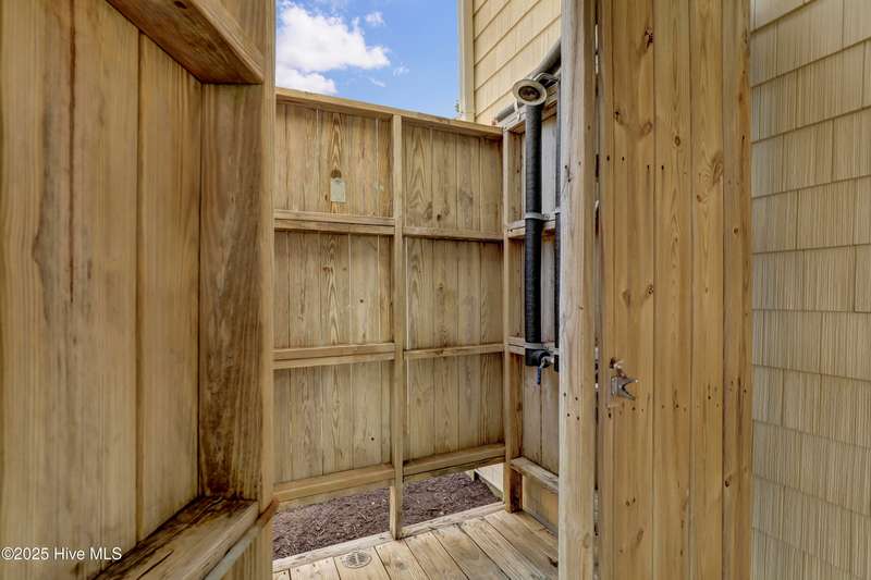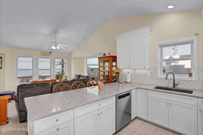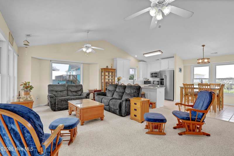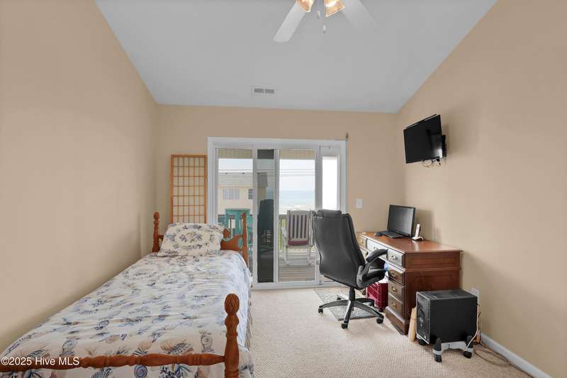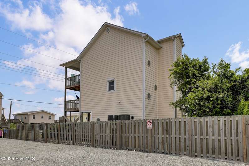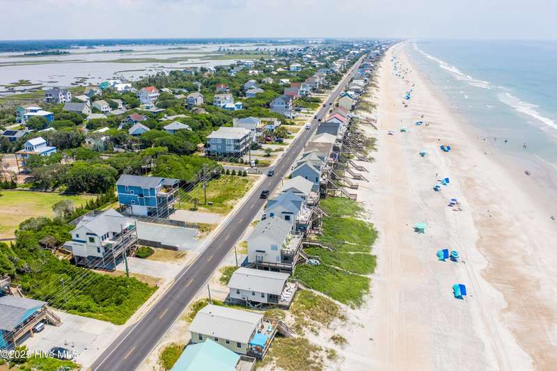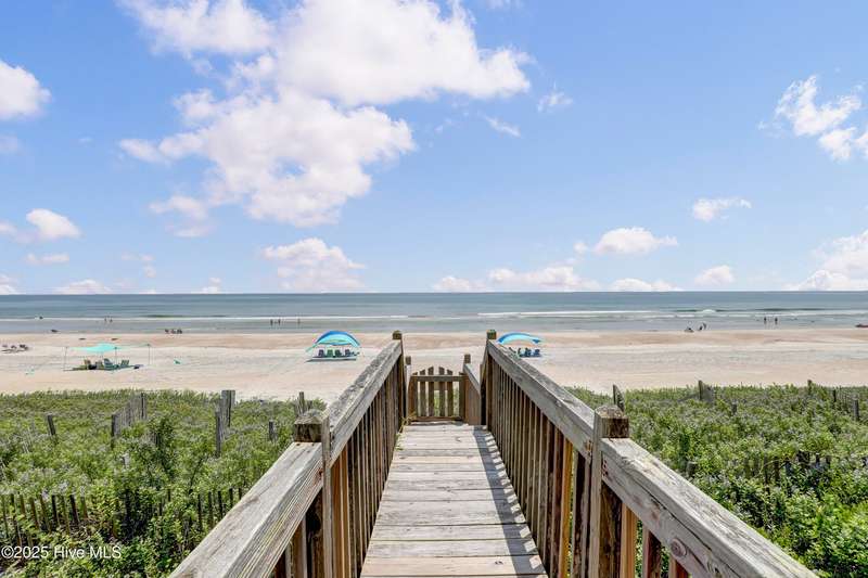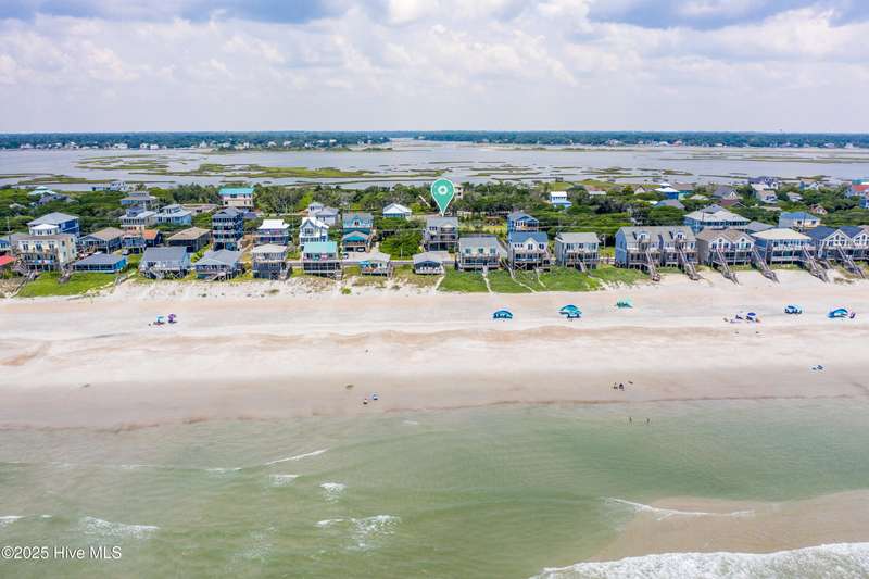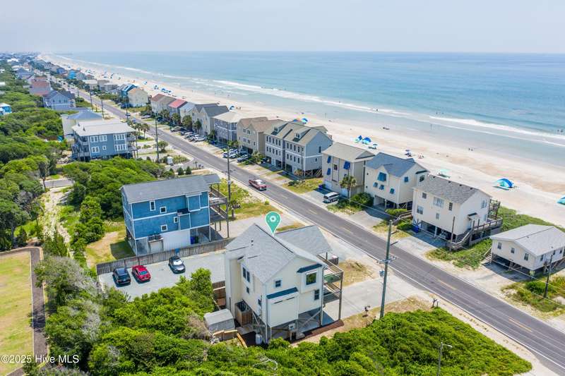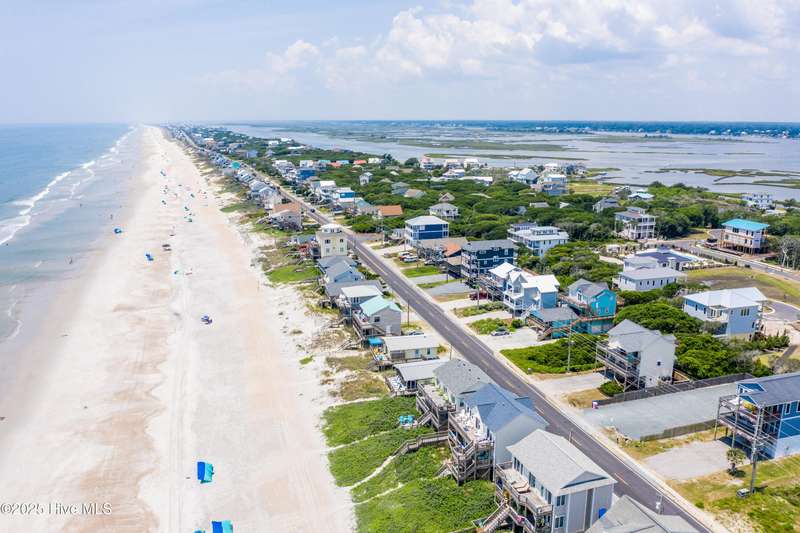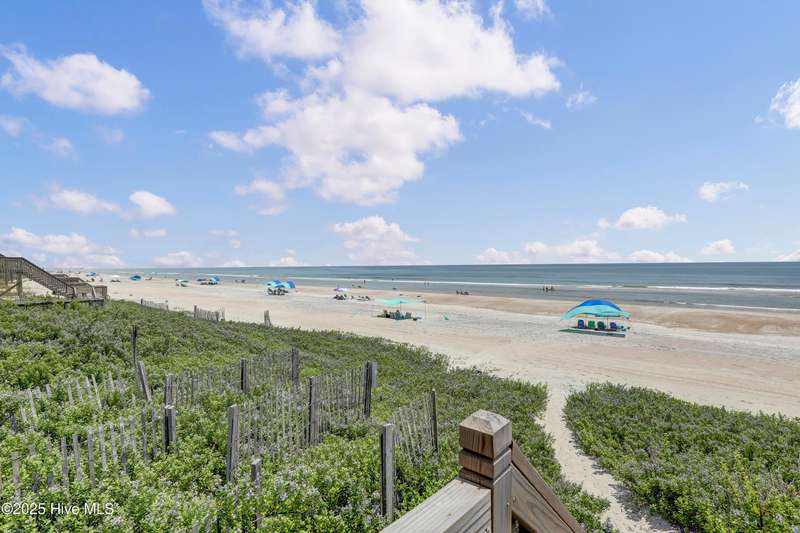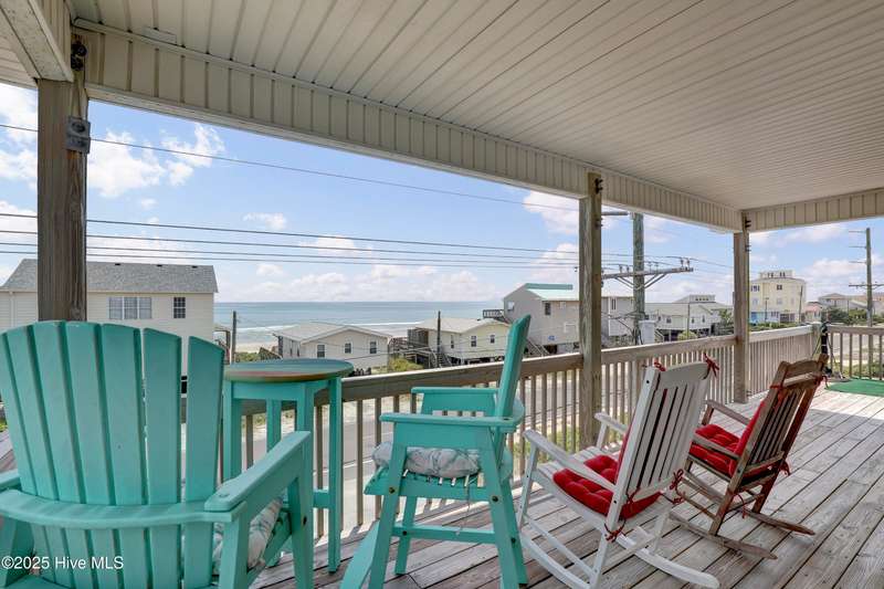 Second row home with ocean and sound views, an elevator and private beach access. A total of 4 bedrooms, 3 full baths featuring an updated gourmet kitchen (2024) with quartz countertops and new KitchenAid appliances, a open living area with lots of windows and a covered deck on oceanside for maximum ocean views and wave watching in any weather. The dining area has water views of the sound for scenic sunset dinners. A bedroom and adjoining full bath has ocean views and access to the top floor oceanside deck as well and completes the top floor of this well maintained home. First living level has 2 guest bedrooms both with access to another oceanside deck and share a full bath in the hallway. An in-suite Master bedroom featuring spacious bath with separate shower and large tub. Master has access to the partially covered oceanside deck great for rainy day reading. The ground level entry has been renovated to include an interior foyer, storage room with extra refrigerator and the added elevator for convenience. Extras include a central Vacuum system, storm shutters and solar film on upper floor windows. Outside there's a large storage shed, an hot and cold outside shower, and even a small enclosed dog yard for the pups. Private deeded beach access is shared with a neighbor and is just across the street.