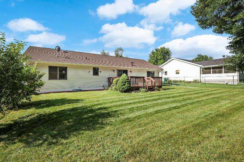 Natural light-filled ranch home with fenced in backyard. New Roof, gutters, downspouts, skylights, front & garage doors, microwave, thermostat, paint and bathroom sink. The meticulously cared for home boasts a large deck that includes a SunSetter(TM) retractable sunshade. Mature tree and beautiful landscaping surround the 1/4 acre lot. Full basement allows for future expansion. Quick access to hwy 51 and I-90.