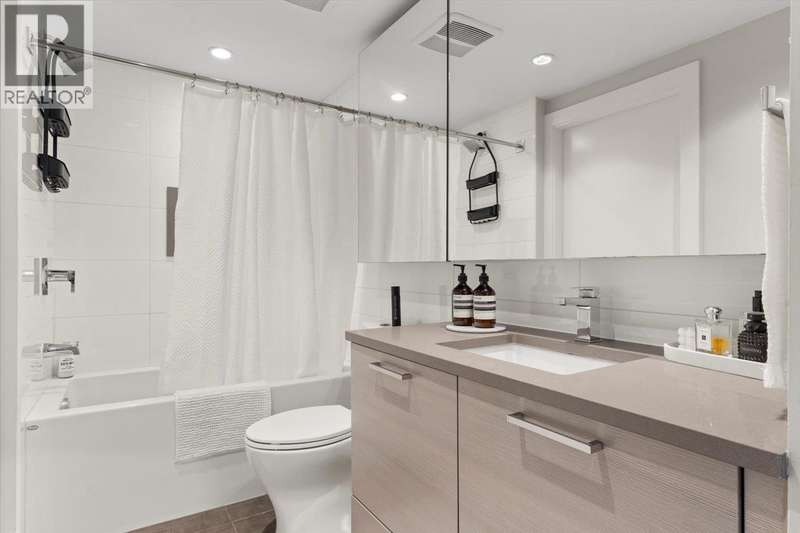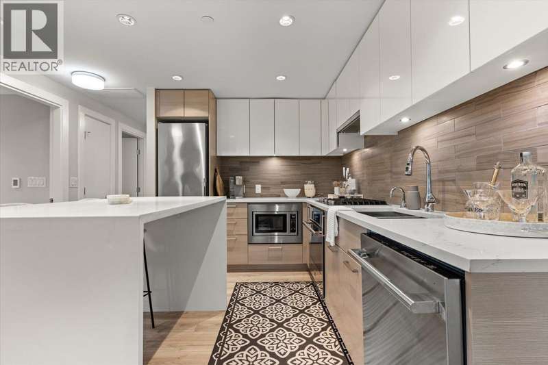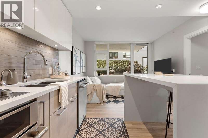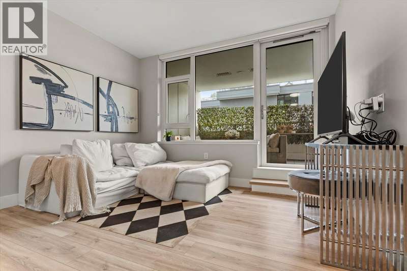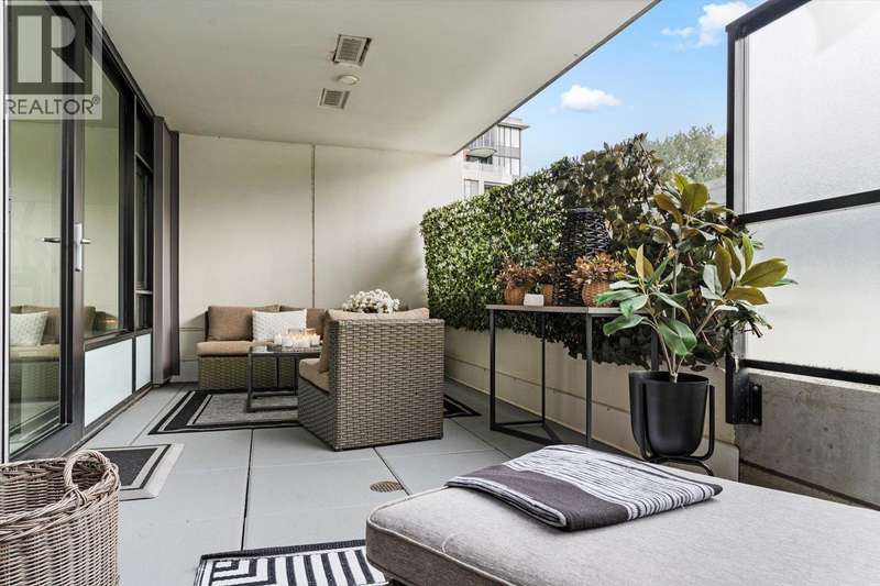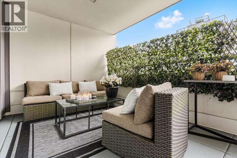This beautifully spacious 1 bed + den at Quartet offers 647 square ft of living plus a RARE, oversized 212 square ft private patio-a standout feature in this building. Perfect for entertaining or peaceful evenings alone, this outdoor space is an extension of your home. Inside, enjoy a modern kitchen with high-end JennAir appliances, gas cooktop, quartz counters, in-suite laundry, and a versatile den for your home office. Resort-style amenities include indoor pool, hot tub, squash & basketball courts, large fitness centre, lounge, and rooftop garden. Just steps away from local shops, cafés, dining, and transit. (id:58403)