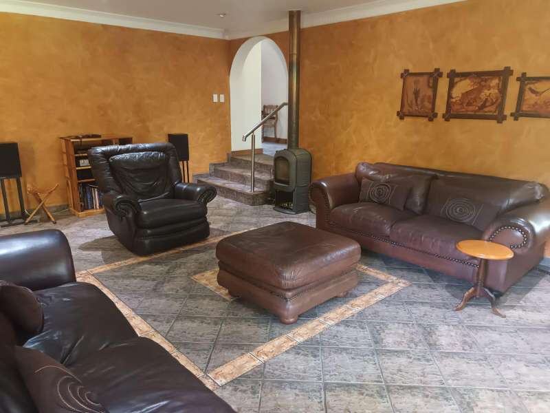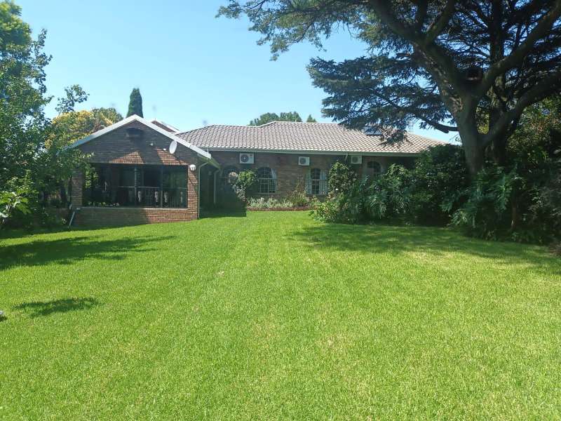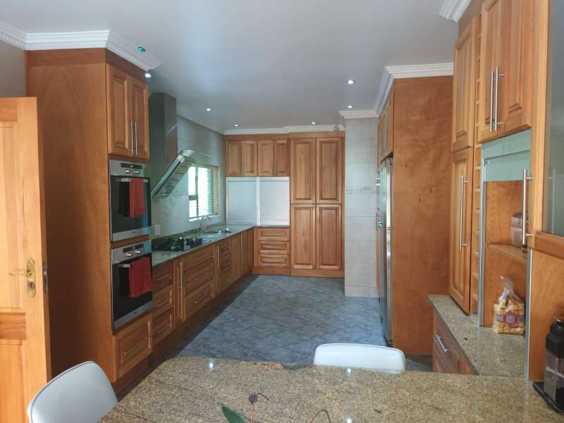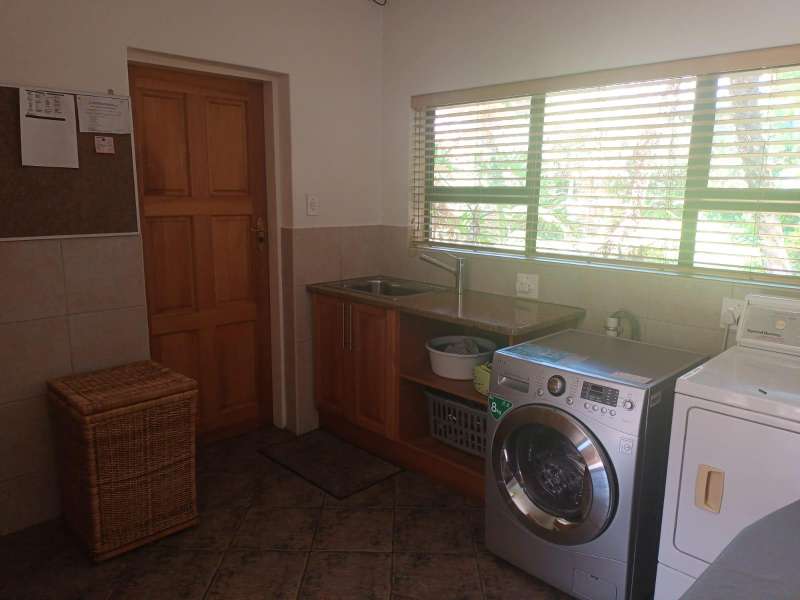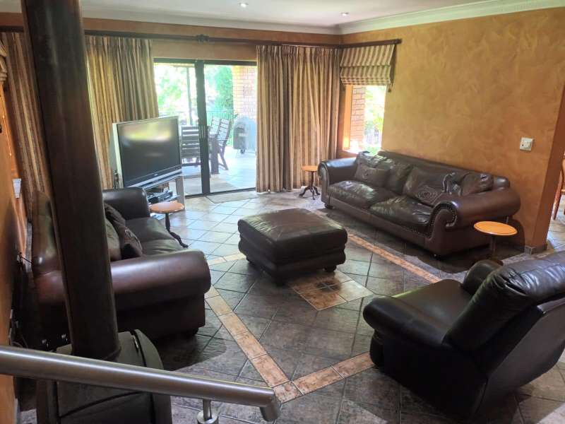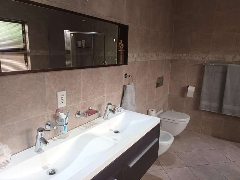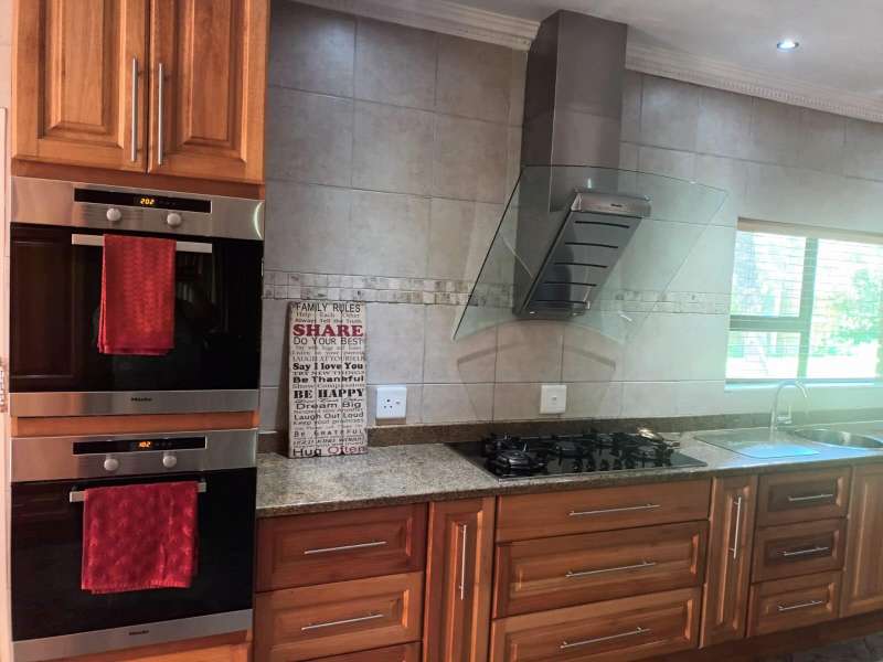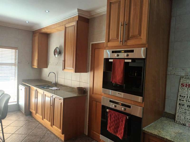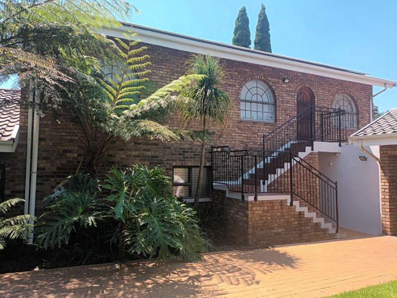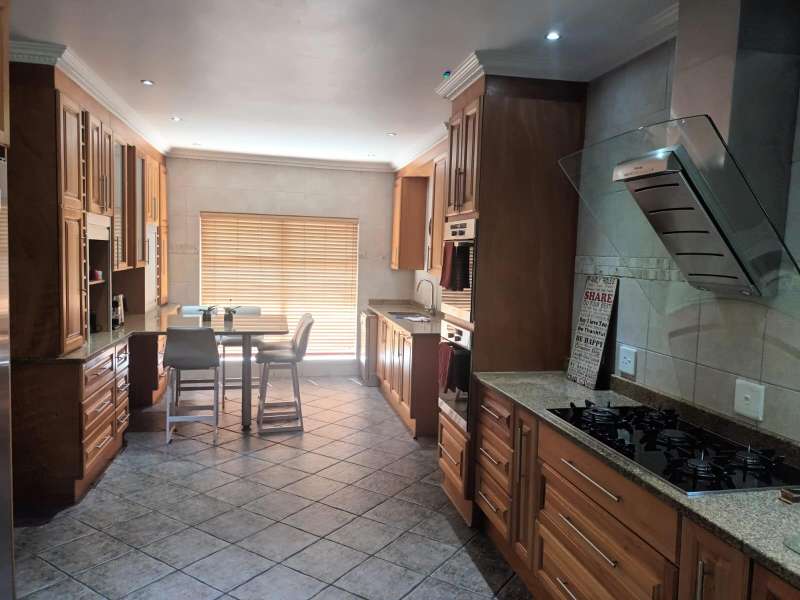 Welcome to this exquisite and spacious semi double-storey house situated in a highly sought-after area, offering an exceptional opportunity for use as a guesthouse or an investment property. Meticulously maintained and boasting low maintenance, this residence is a true gem. The main home features 5 bedrooms and 3.5 bathrooms, including 2 en-suites, providing a luxurious and comfortable living space. A study, dining room, TV room, and lounge with a built-in wood-burning fireplace contribute to the overall elegance and warmth of the house. The lounge opens onto a covered patio, offering breathtaking views of the lush garden at the back. The modern and well-designed kitchen is equipped with a gas stove and three ovens, including a convection microwave oven. Marble countertops and a sliding door pantry that opens onto the laundry enhance the kitchen's functionality. The property includes a double garage with an extended length and a single garage with an ideal height for a caravan, both providing direct access into the home. A tandem enclosed carport accommodates parking for four vehicles. For added convenience and potential income generation, the property offers a spacious 1-bedroom flatlet and two bachelor flats. Extra features include an alarm system with beams and 10 CCTV cameras, 36 (9 KV) solar panels on the roof, and a sun-powered geyser with a split system. A 10kv inverter with a 24kv battery backup ensures uninterrupted power supply. Additionally, there are 2 x 5000-liter Jojo tanks with a booster pump and a water filtration system, 9 air conditioners, and a borehole. Situated close to all amenities, this property is a rare find. Don't miss out on the opportunity to experience the luxury, functionality, and sustainability it offers. Call today to schedule a viewing and make this exceptional residence your own.