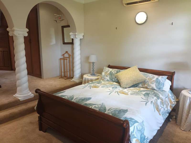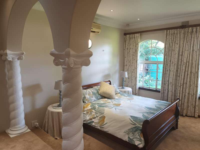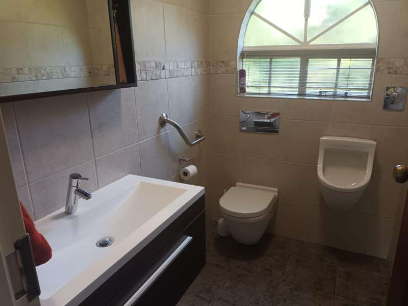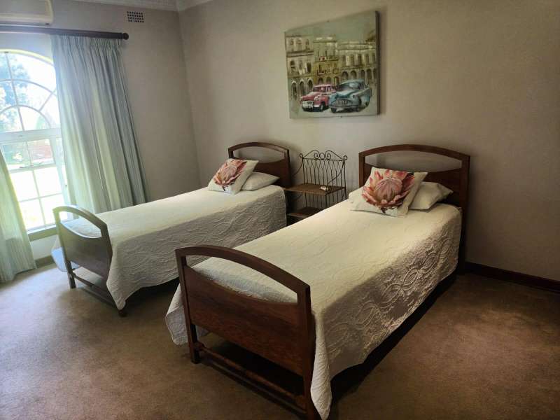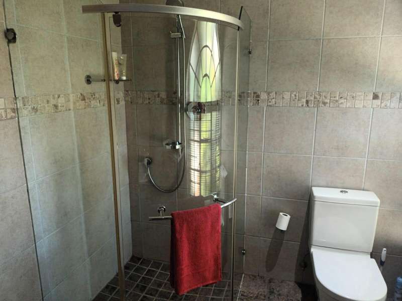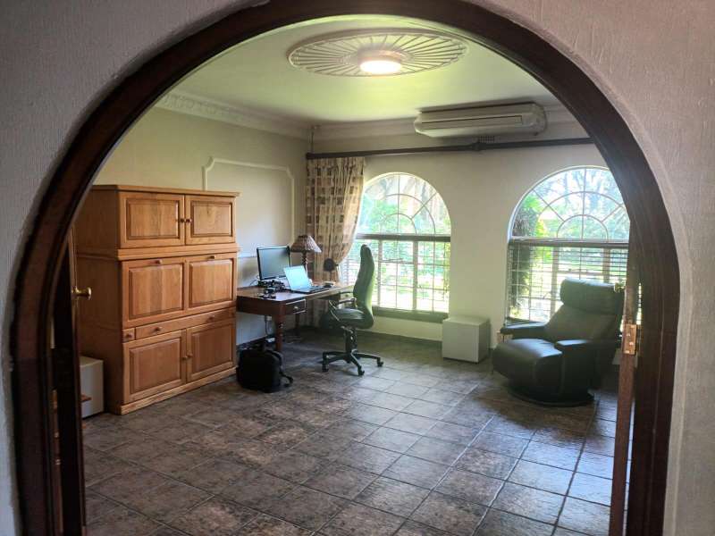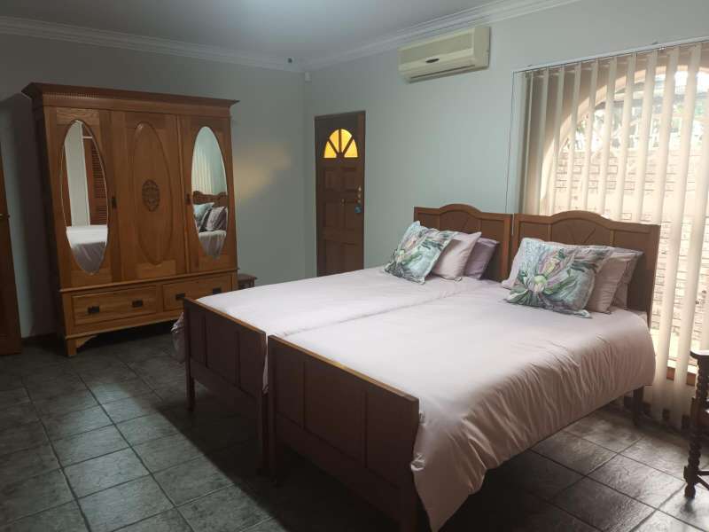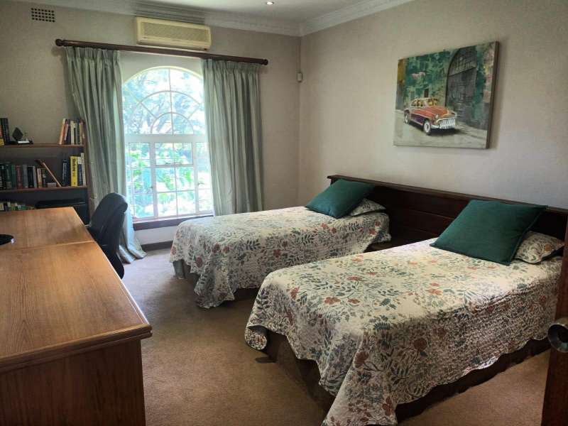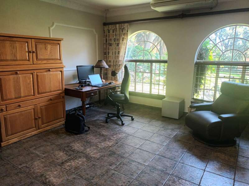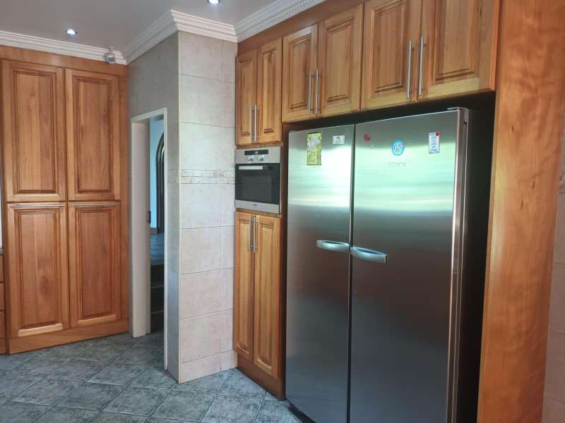 Welcome to this exquisite and spacious semi double-storey house situated in a highly sought-after area, offering an exceptional opportunity for use as a guesthouse or an investment property. Meticulously maintained and boasting low maintenance, this residence is a true gem. The main home features 5 bedrooms and 3.5 bathrooms, including 2 en-suites, providing a luxurious and comfortable living space. A study, dining room, TV room, and lounge with a built-in wood-burning fireplace contribute to the overall elegance and warmth of the house. The lounge opens onto a covered patio, offering breathtaking views of the lush garden at the back. The modern and well-designed kitchen is equipped with a gas stove and three ovens, including a convection microwave oven. Marble countertops and a sliding door pantry that opens onto the laundry enhance the kitchen's functionality. The property includes a double garage with an extended length and a single garage with an ideal height for a caravan, both providing direct access into the home. A tandem enclosed carport accommodates parking for four vehicles. For added convenience and potential income generation, the property offers a spacious 1-bedroom flatlet and two bachelor flats. Extra features include an alarm system with beams and 10 CCTV cameras, 36 (9 KV) solar panels on the roof, and a sun-powered geyser with a split system. A 10kv inverter with a 24kv battery backup ensures uninterrupted power supply. Additionally, there are 2 x 5000-liter Jojo tanks with a booster pump and a water filtration system, 9 air conditioners, and a borehole. Situated close to all amenities, this property is a rare find. Don't miss out on the opportunity to experience the luxury, functionality, and sustainability it offers. Call today to schedule a viewing and make this exceptional residence your own.