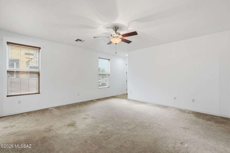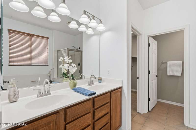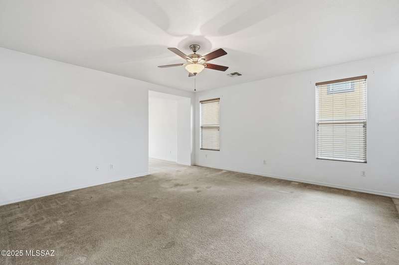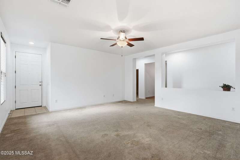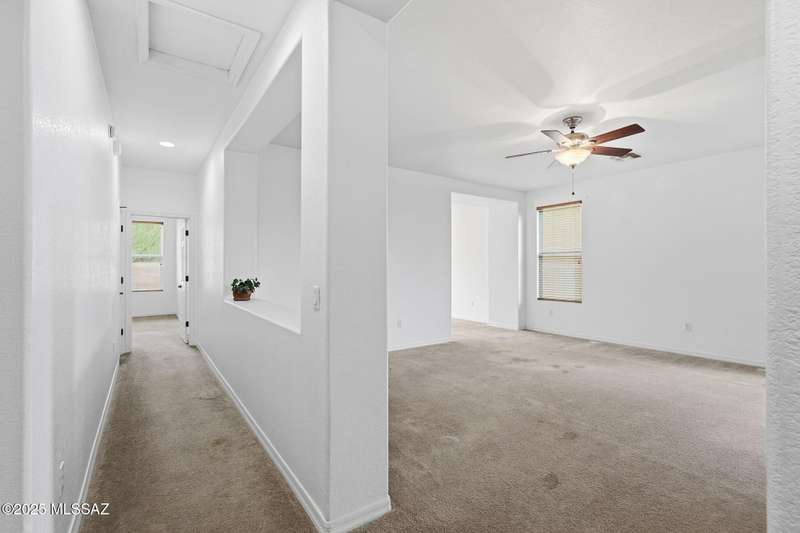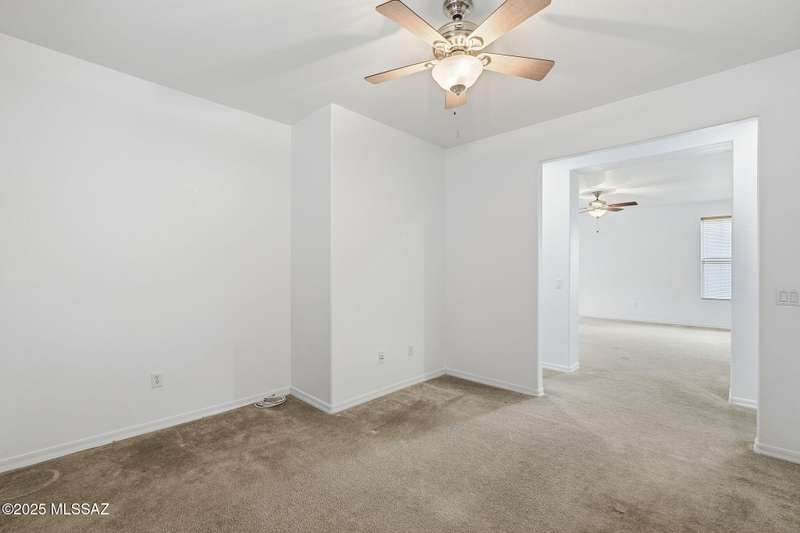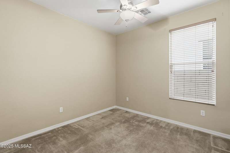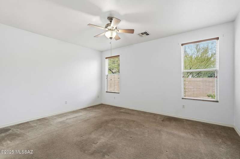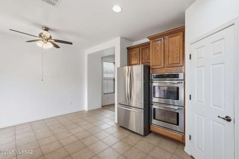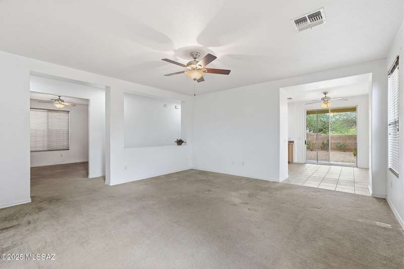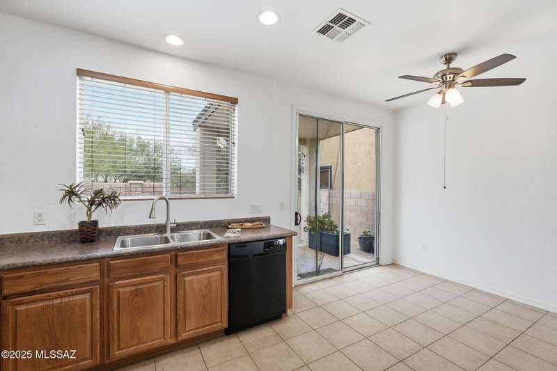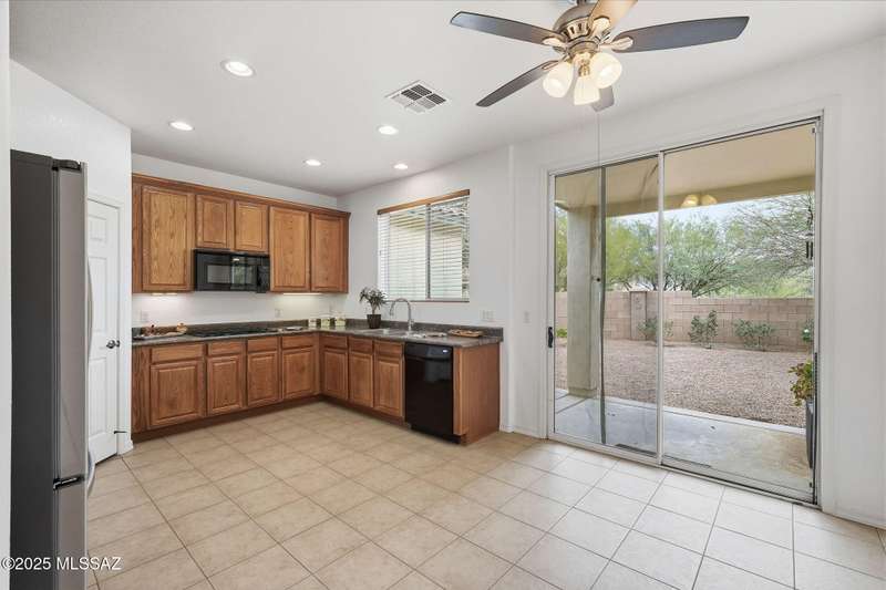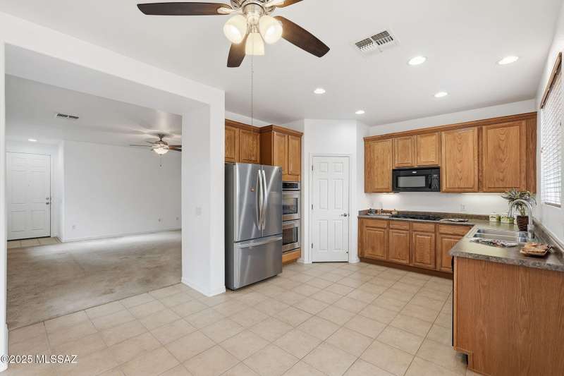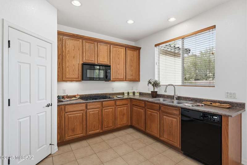Thoughtfully designed 3bd/2bath + den split plan layout. Open great room offers welcoming ambiance w/neutral color tones & ample natural light. Spacious kitchen is equipped w/abundant ext'd cabinetry, gas cooktop, double ovens & generous walk-in pantry providing both functionality & convenience. Private primary suite w/nice walk-in closet, executive-height counters w/dual sinks & sep tub/shower. Generous spare rooms plus den could easily be 4th bd. Add'l amenities include wood blinds, ceiling fans & 5 yr maint free water filtration system. Lovely backyard offers exceptional privacy w/no rear neighbors, private cov'd patio & scenic mtn views creating an ideal setting for outdoor enjoyment. $3500 carpet allowance w/acceptable offer. Located in award-winning Rancho Sahuarita features pool,
