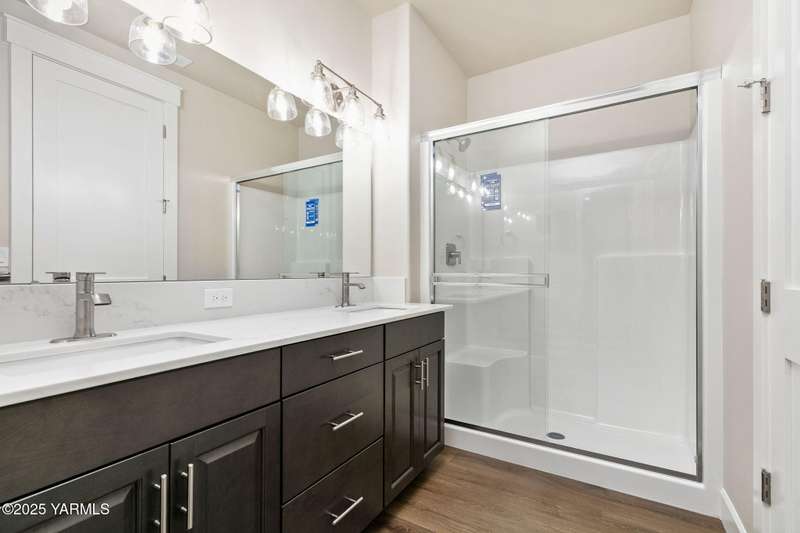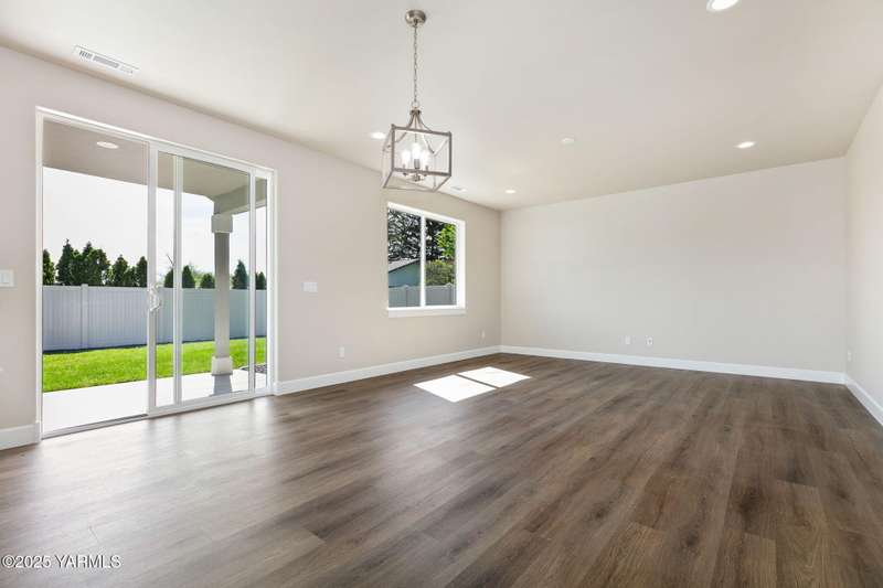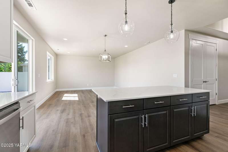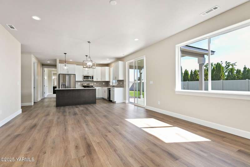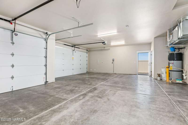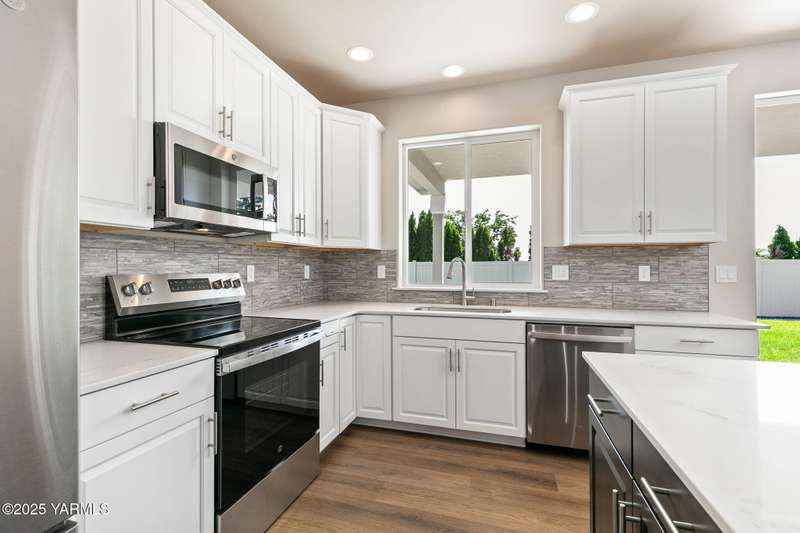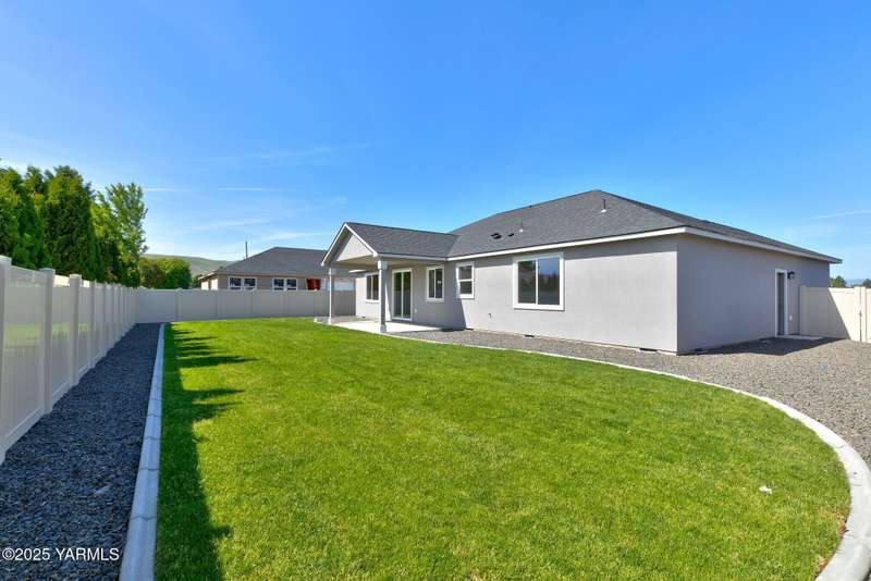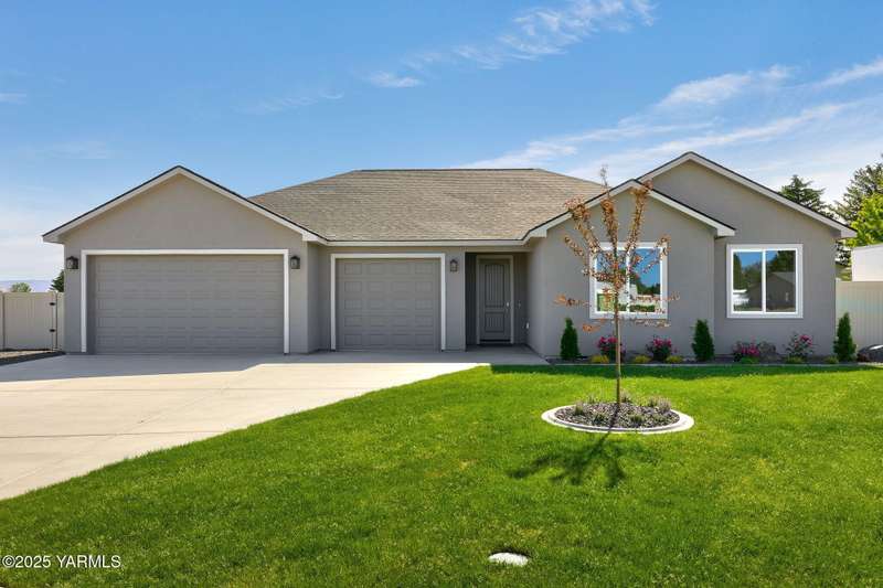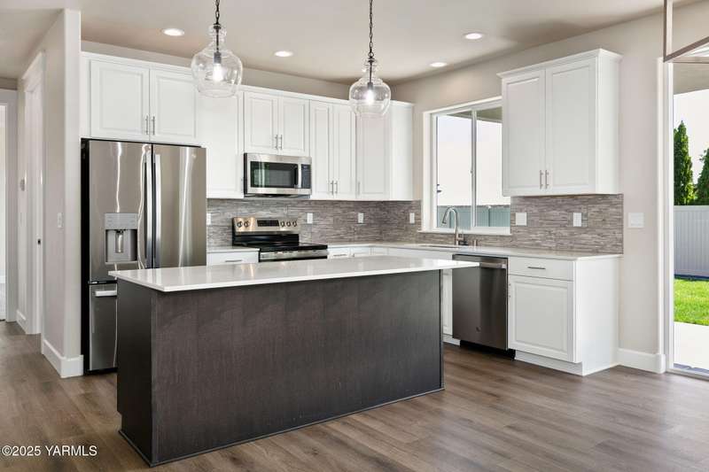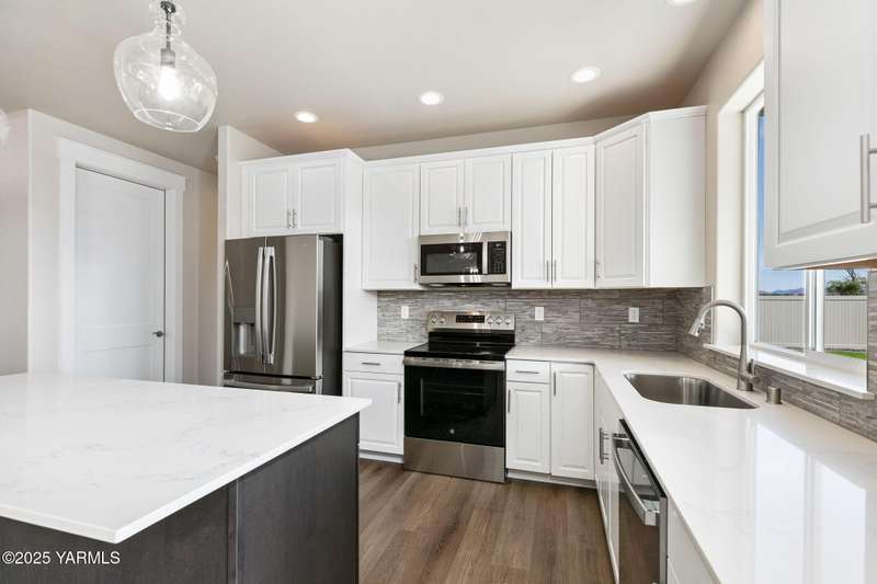Step into this beautifully crafted, brand-new 4-bedroom, 2-bath home designed with comfort and style in mind. From the moment you enter, you'll appreciate the soaring 9-foot ceilings and the seamless flow between the open-concept kitchen and living room. The kitchen features elegant quartz countertops, sleek stainless-steel appliances, and a modern undermount sink. The thoughtful floorplan places the spacious primary suite on its own side of the home, complete with a walk-in closet and an en-suite bath featuring double sinks and a walk-in shower. The additional three bedrooms are tucked away on the opposite side, offering separation and privacy. Just off the attached garage, you'll find a functional laundry/mudroom with bonus pantry storage. Outside, the low-maintenance, professionally landscaped yard is complemented by a fully fenced backyard. The finished three-car garage offers additional convenience. Don't miss your chance to tour this exceptional home where quality and comfort come together beautifully.