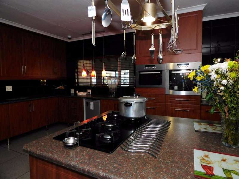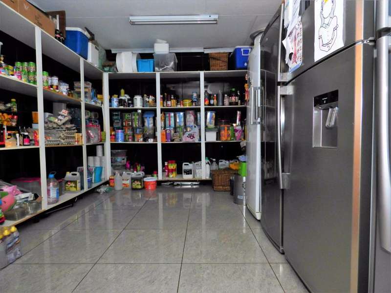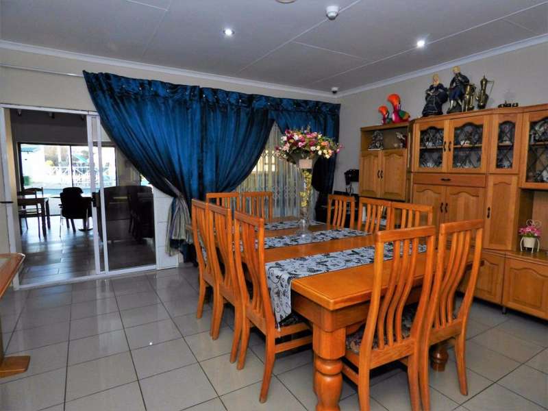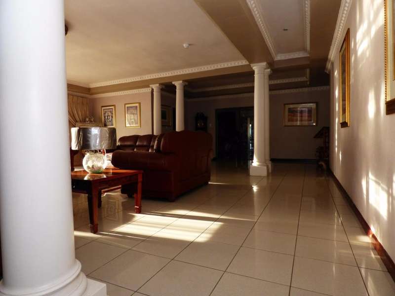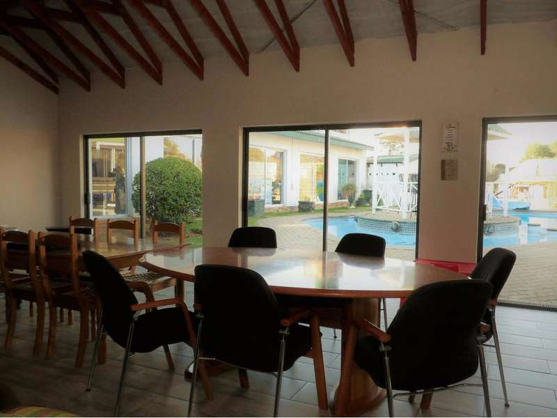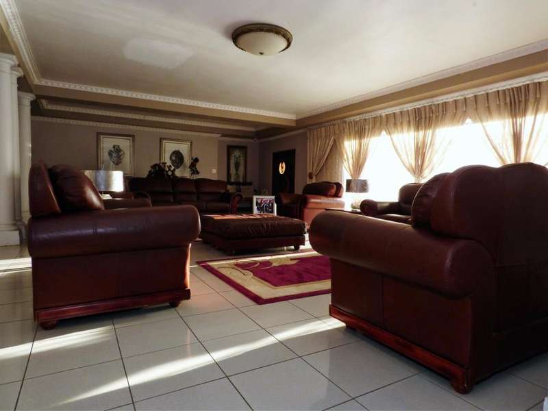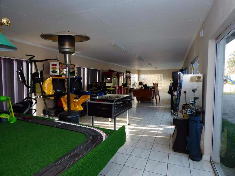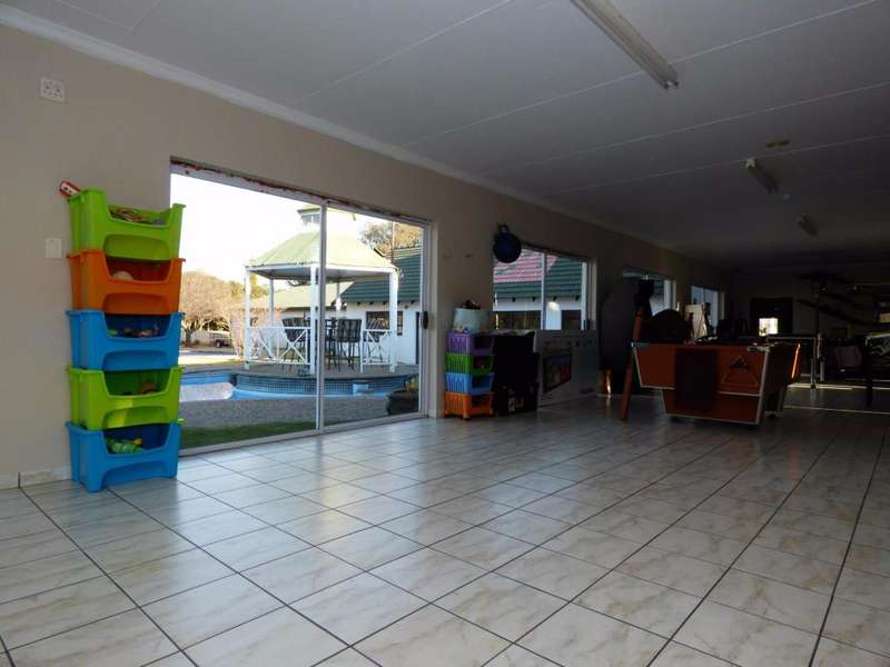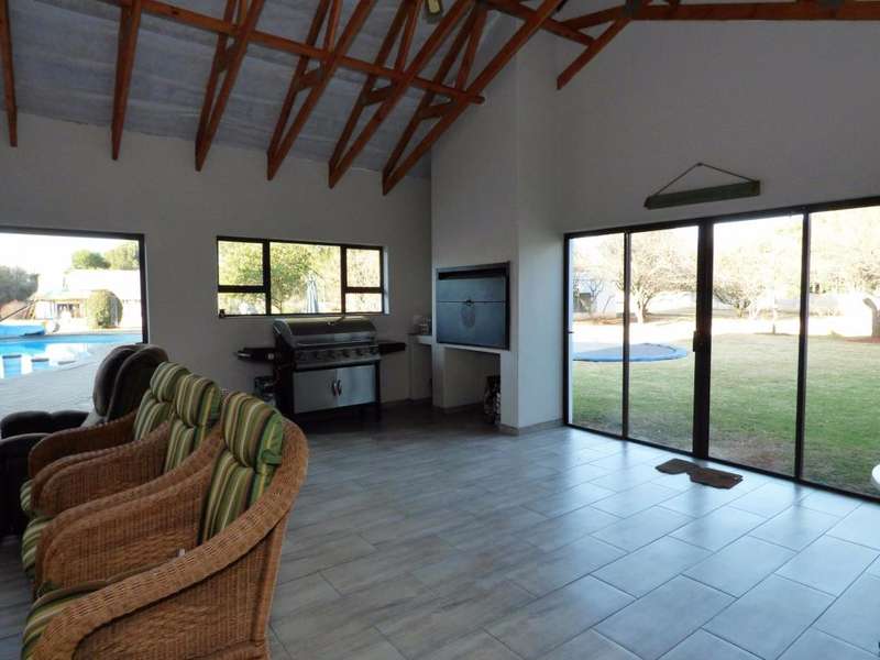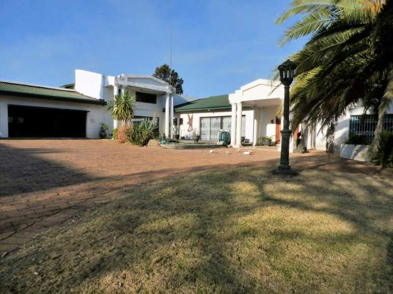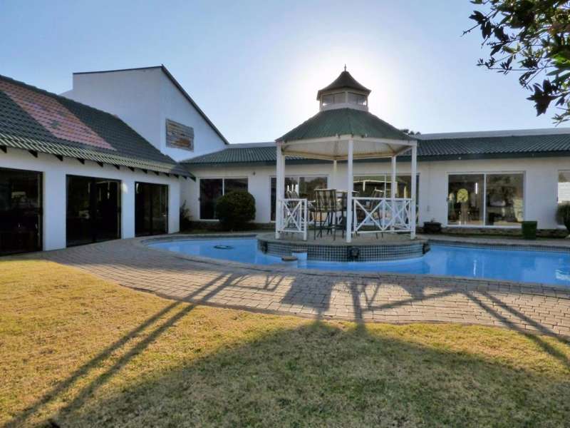 Live the country life close to everything. Elevated home with spectacular views of the pan. Watch the flamingos from your bedroom window, enjoy the sunsets and the bird life. Large home with the accent on entertaining. Five bedrooms of various sizes, two with en suite bathrooms and one with a private lounge. Fabulous kitchen of hotel proportions plus a walk in pantry and separate scullery. Poolside under cover patio, gym room, hobby room and fitted bar to delight any sociable host. Second building houses a two bedroom flat with a guest loo, bathroom, huge lounge, kitchen and family room. Additional flatlet with some changes. Currently house a large laundry room. Third flat for gran or tenant. Separate function room has a fully fitted kitchen and can comfortably accommodate 80 to 120 guests. Garaging for four vehicles. Enormous workshop and parking for an extra 6 vehicles. Level established garden. Three phase electricity and strong borehole This is a taste of much more this property has to offer.