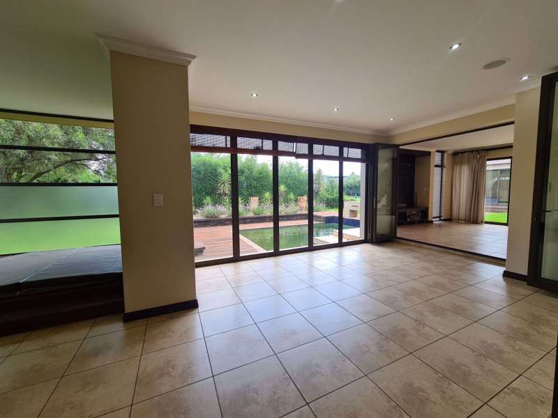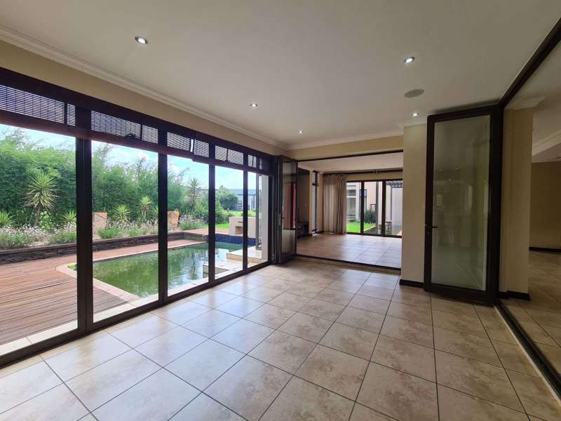 Don't miss this fantastic opportunity to invest in the prestigious Serengeti Golf and Lifestyle Estate! This modern, double-story home features 4 spacious bedrooms and 3 elegant bathrooms. Upon entering, you'll be greeted by a stunning glass door that leads into a beautiful glass-covered area adorned with fountains, evoking the charm of a lost Roman empire. The expansive open-plan design incorporates a generous lounge, dining room, and kitchen, complete with a separate entertainment area and luxurious jacuzzi—perfect for hosting gatherings, with sliding doors that open directly onto the pool deck. Gorgeous Main en - suite with dressing room Additional features include 3 garages and a flatlet that boasts 1 bedroom, an en-suite bathroom, a lounge, and a kitchen with a private entrance—ideal for a granny suite or teenage retreat. Contact me to schedule a viewing. Reasonable offers will be considered!