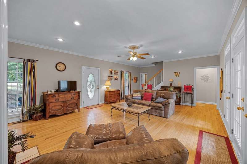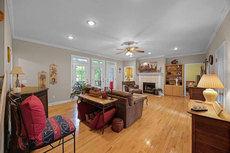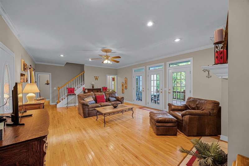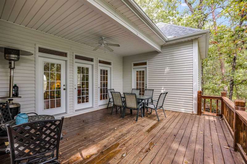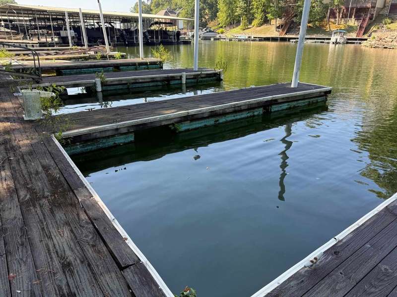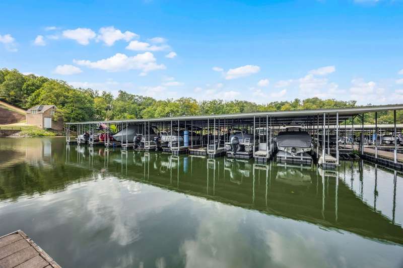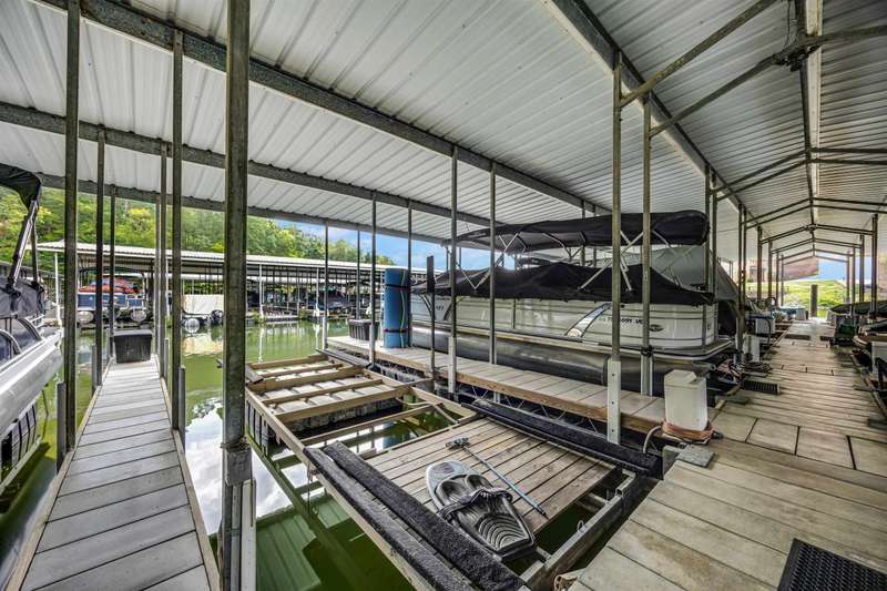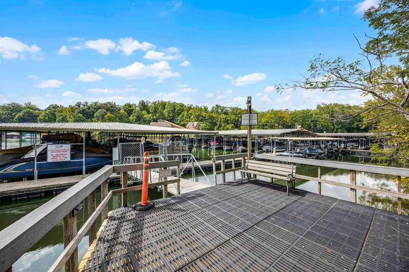 Discover lake life living in this beautiful 3-bedroom, 2.5-bath home with the primary suite conveniently located on the main level. This home features solid construction plus added bonus of a brand new roof, transom windows, and built-ins! The home includes an incredibly deep 47-foot garage, perfect for boat storage, RVs, or multiple vehicles. Off the garage, you'll find two versatile storage rooms in the basement?ideal for a workshop, hobby space, or extra storage. Step outside to a covered deck where you can relax and enjoy the peaceful setting. This home is located in a gated community featuring a swimming pool and private boat ramp. Most of the furniture stays and all appliances stay so you can move right in and start enjoying the lifestyle. The home comes with a open water boat slip, making it perfect for lake enthusiasts., covered slip C?7 is available for purchase, offering even more convenience for boating and water access. Handy large trams down to the lake.