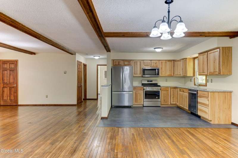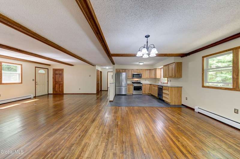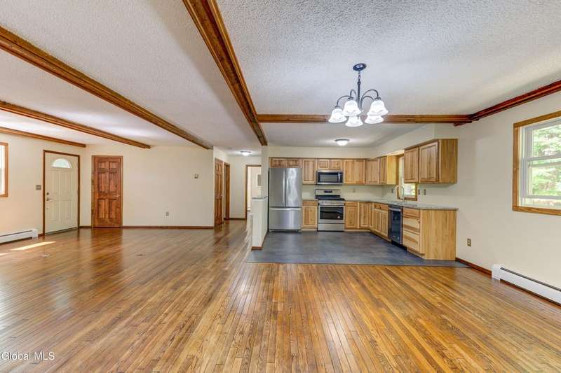 Welcome to this inviting ranch-style home in the Adirondack community of Lake Luzerne, offering the perfect balance of privacy, comfort, and convenience. Set back from the road on a paved driveway, this home provides a peaceful retreat while still being just 15 minutes to Lake George, 30 minutes to Saratoga, and under an hour to Gore Mountain Ski Resort.Designed for easy, single-floor living, the home features 1,200 square feet with two bedrooms and one full bath. The open-concept living and dining room creates a welcoming space for gatherings in front of the fireplace, while the kitchen offers granite countertops and plenty of workspace for everyday meals. Beautiful hardwood floors flow throughout, adding warmth and character.The full unfinished basement presents an exciting opportunity to create additional living space tailored to your needs, whether that's a family room, home office, or guest room. A two-car garage under the residence adds both convenience and storage.Move-in ready and thoughtfully maintained, this home is a wonderful option for year-round living or as a serene getaway close to Adirondack recreation.Don't miss the chance to make this Lake Luzerne retreat your own. Schedule your showing today and start imagining your life in this welcoming home!