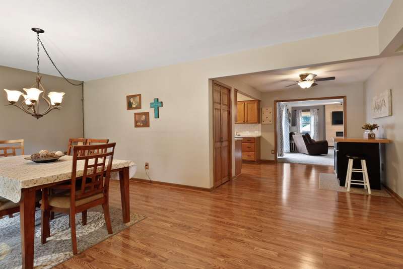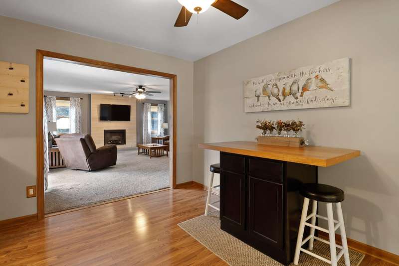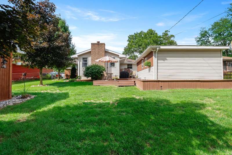 Welcome to this beautifully maintained 3 bedroom, 2 bathroom ranch, ideally located in the vibrant heart of Highland--just steps away from Main Square Park, local shops, the library, and so much more! Come inside to find an inviting open-concept dining area that flows seamlessly into the updated kitchen, complete with stainless steel appliances, modern countertops, and a classic subway tile backsplash--a perfect blend of style and function. One of the standout features of this home is the spacious family room addition, featuring a cozy fireplace that creates an ideal space for entertaining or relaxing evenings at home. Sliding doors off the family lead to deck and backyard. The main level offers three comfortable bedrooms and a full bathroom, all with great natural light. The master bedroom has sliding doors to its own private deck, perfect for your morning coffee. Downstairs, you'll find a finished basement that is clean, welcoming, and ready for movie nights, a home office, or playroom space--plus an additional 3/4 bathroom for added convenience. Outside, enjoy the generous yard space and a detached 1.5-car garage, offering both storage and functionality. Don't miss your chance to own this charming, move-in-ready ranch in one of Highland's most desirable locations!