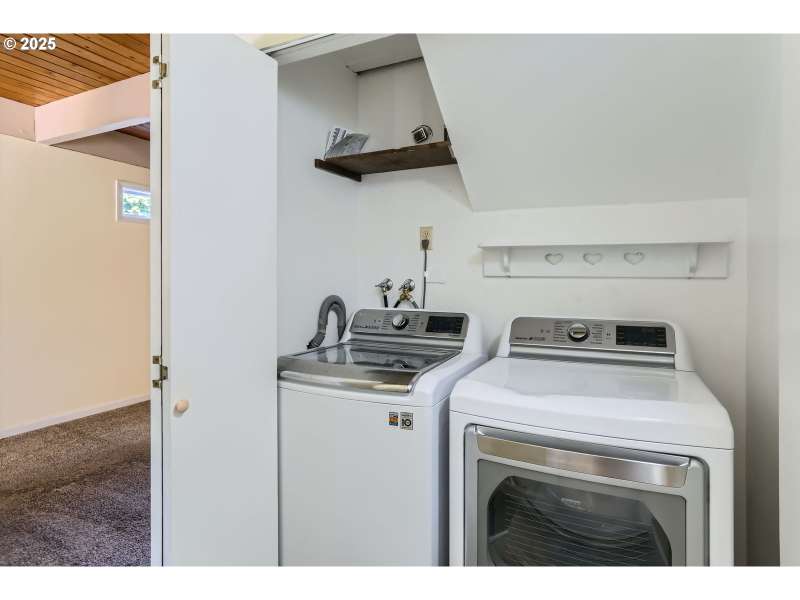 End-unit townhouse with unbeatable golf course lot! With an extra-large (6,970 SQFT) lot, this home is situated in possibly the best location of all the Springridge townhouses. It offers stunning views of the ninth fairway, sunny southern exposure, three decks, and abundant gardening space with mature landscaping. The home has been well maintained and extensively updated with vinyl windows, two mini-splits for comfort all year long, and white doors and millwork. The remodeled kitchen features quartz countertops, new soft close cabinets, stainless steel appliances, and vinyl slider to the deck and backyard beyond. It's fully open to the living room, boasting exposed tongue & groove ceilings and a wood-burning masonry fireplace. Primary suite offers recent carpet, ceiling fan, private covered deck, and attached bathroom with updated fixtures. Oversized attached garage with opener, plus driveway parking. $155/month HOA dues includes exterior & commons maintenance. All appliances included! Outstanding location, just steps from Rock Creek Country Club and THPRD parks and trails, with easy access to local Washington County employers!