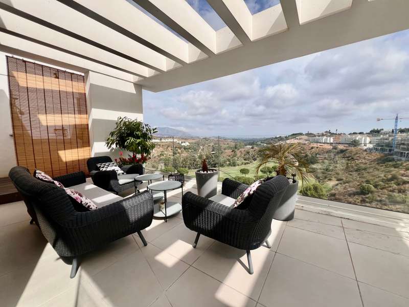 This exclusive south-facing duplex penthouse boasts impressive open views over the golf course and a privileged location within a high-end residential complex. The property is delivered fully furnished with exclusive Nordic designer furniture, ready to move in and enjoy. On the upper floor, a spectacular private solarium with its own swimming pool offers the ideal space to relax, sunbathe or share unforgettable moments with family and friends, all while enjoying breathtaking panoramic views. The penthouse includes two large parking spaces and a storage room, in addition to all the amenities of a premium residential complex: Communal swimming pool, fully equipped gym, sauna and Jacuzzi, Beautiful landscaped gardens, perfect for walking and relaxing. Thanks to its south orientation, the property enjoys natural light throughout the day, creating a warm, welcoming and exclusive atmosphere in every room. A truly unique home that combines luxury, comfort and quality of life, designed for t