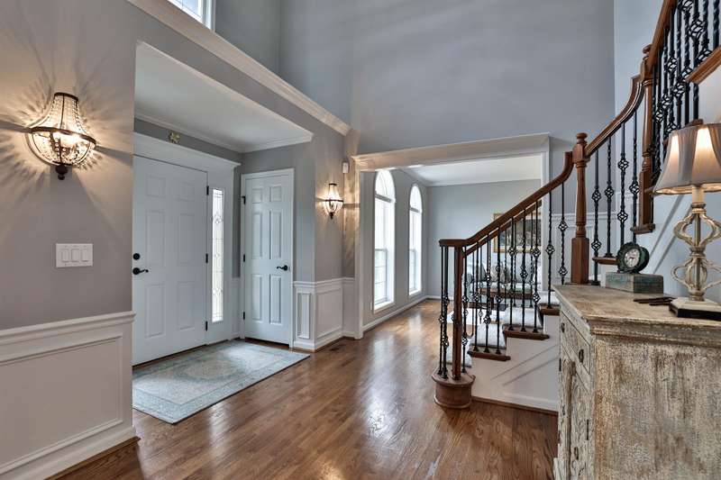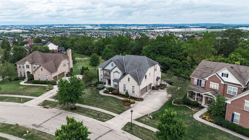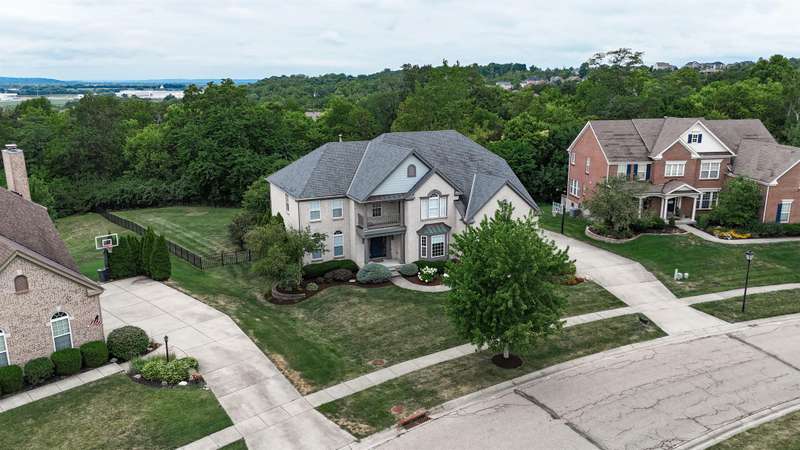 This executive home, featuring the Drees Hartwick floorplan, is located in the Foxborough community. The property includes an aluminum rail fenced rear yard, a three-car garage, composite deck, hardwood floors throughout most of the first floor, white cabinets, ELPHA shelving, granite countertops, a five-burner gas cooktop, convection microwave/oven, and a walk-in pantry in the kitchen. The family room has new carpet. On the second floor, there are three full bathrooms and a bonus loft/gaming area, as well as a primary bedroom suite. The fully finished lower level contains a bar, LVP flooring, full-sized windows, a game area, a fifth bedroom, a 21'x21' media room, and a built-in safe room. Recent updates include new paint (2025), HVAC, and water heater (2020). The home is equipped with hardwired WiFi-boosting equipment for improved signal coverage.